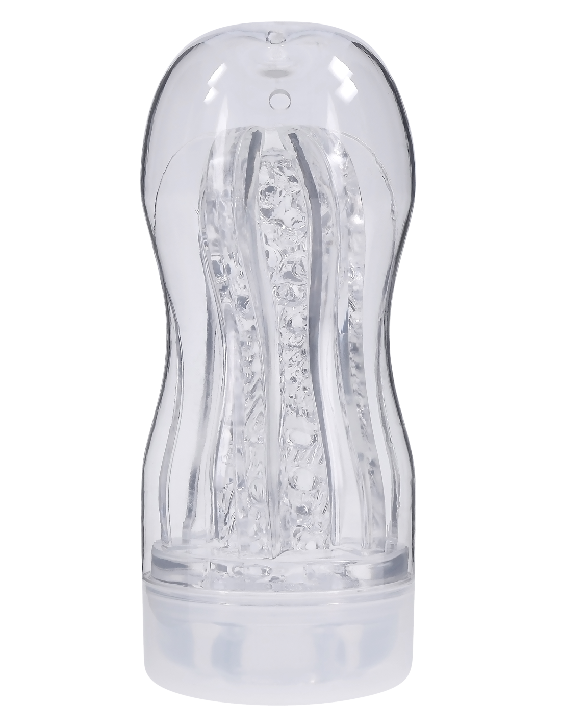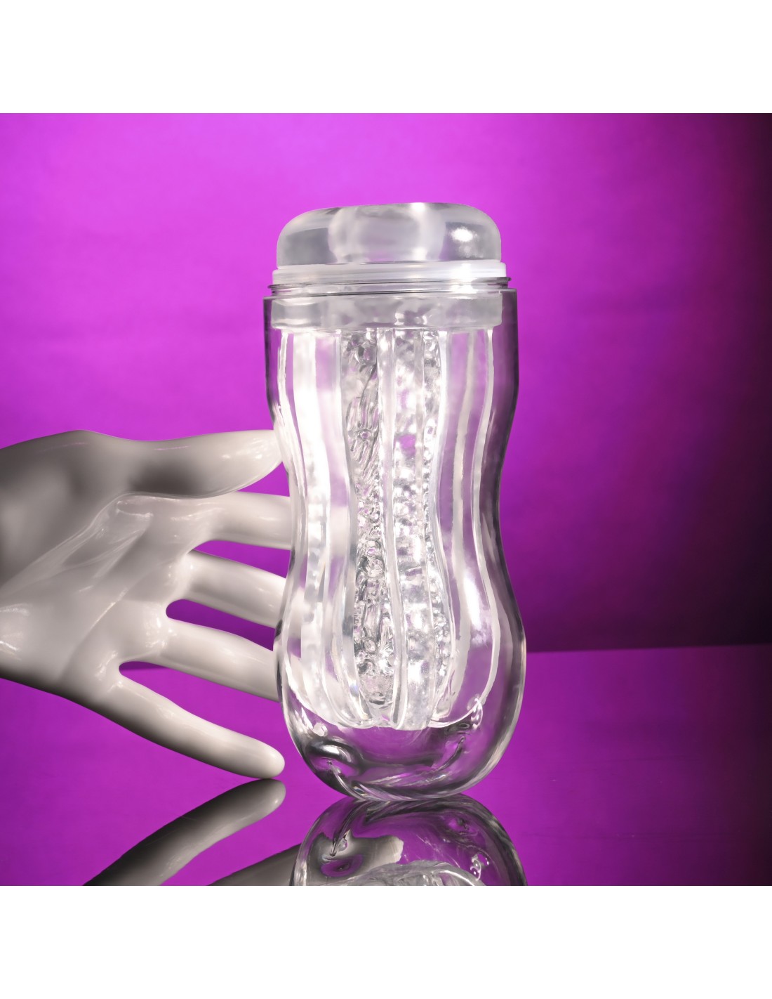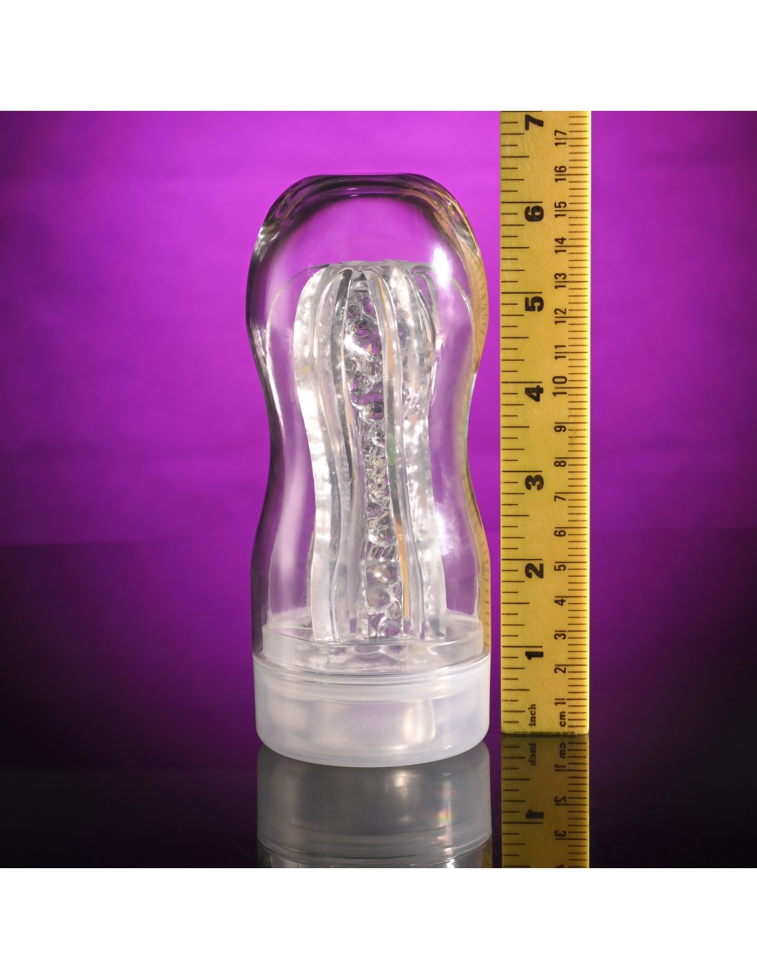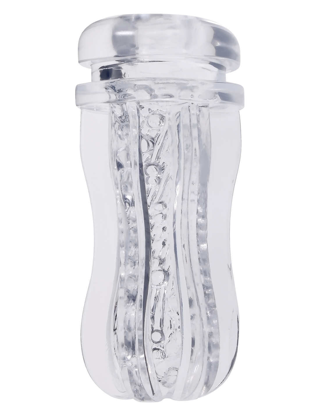 This portable stroker features a soft and squishy beaded inner channel nestled inside an ergonomic canister designed for a comfortable, easy grip. Vibrating C-ring included.