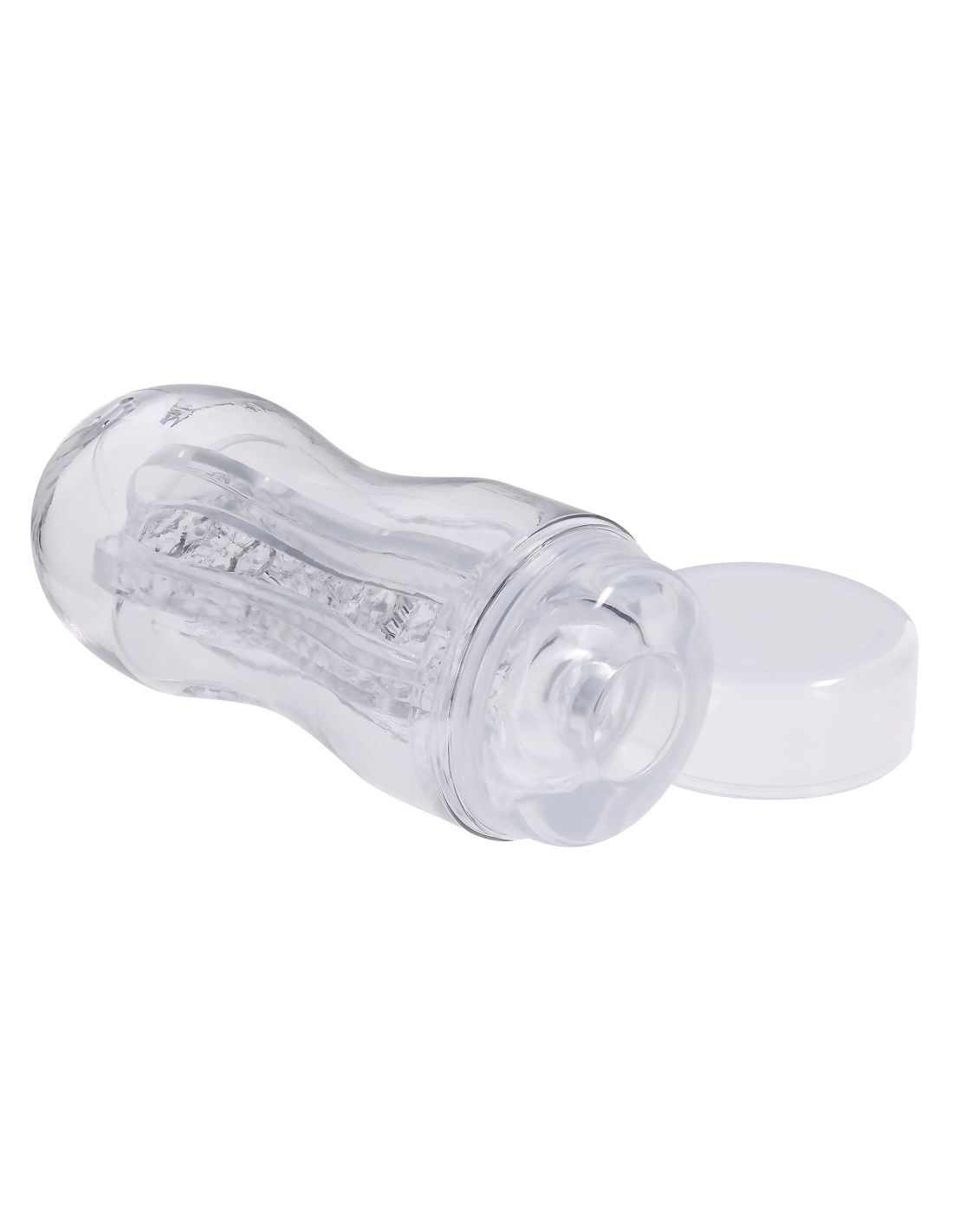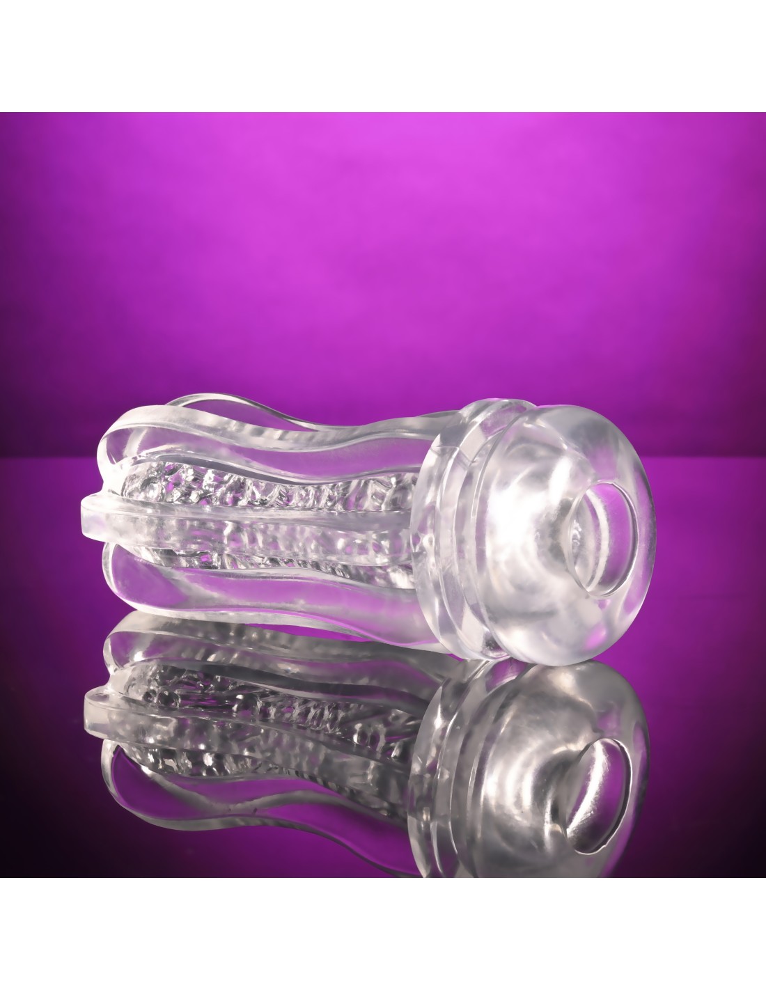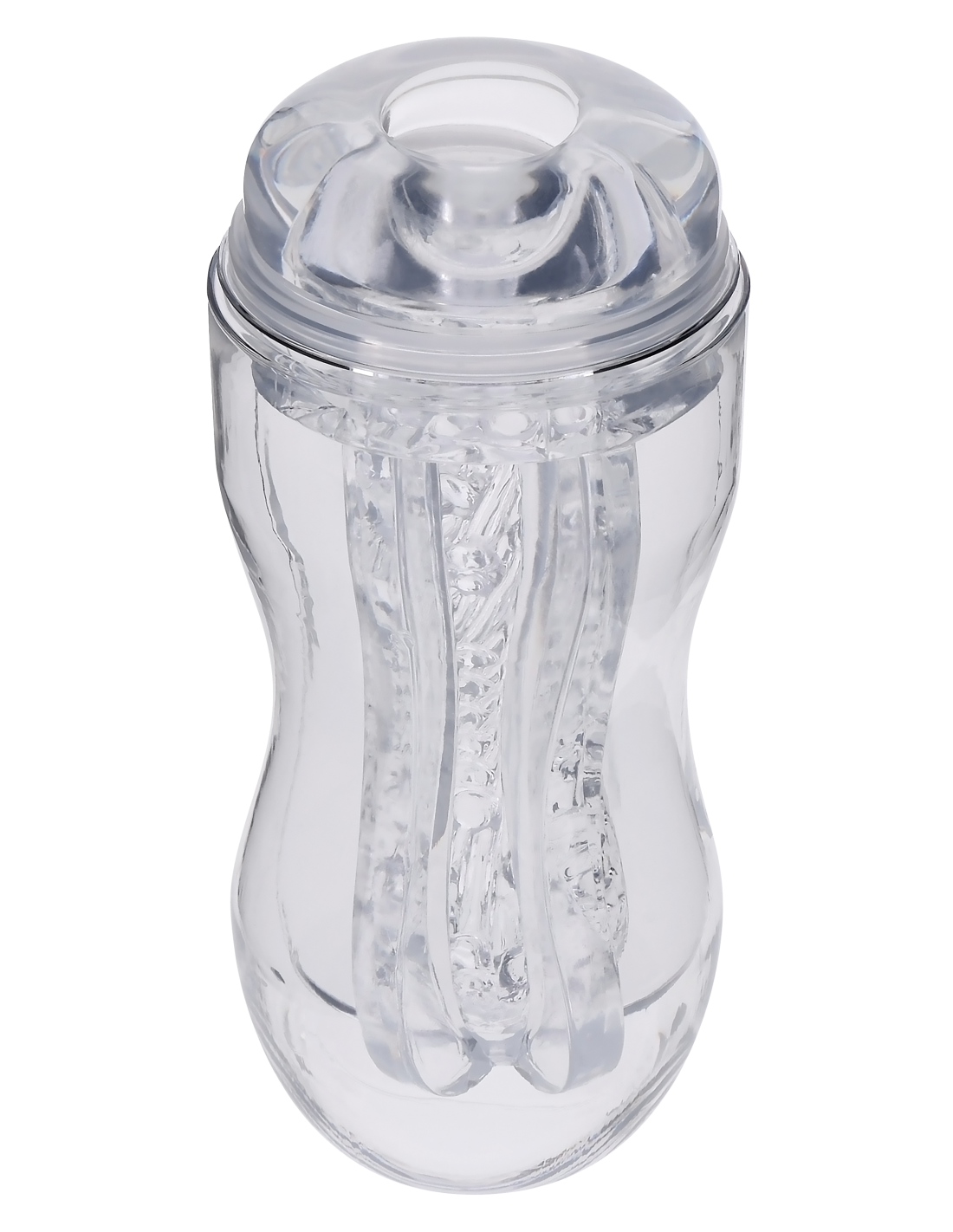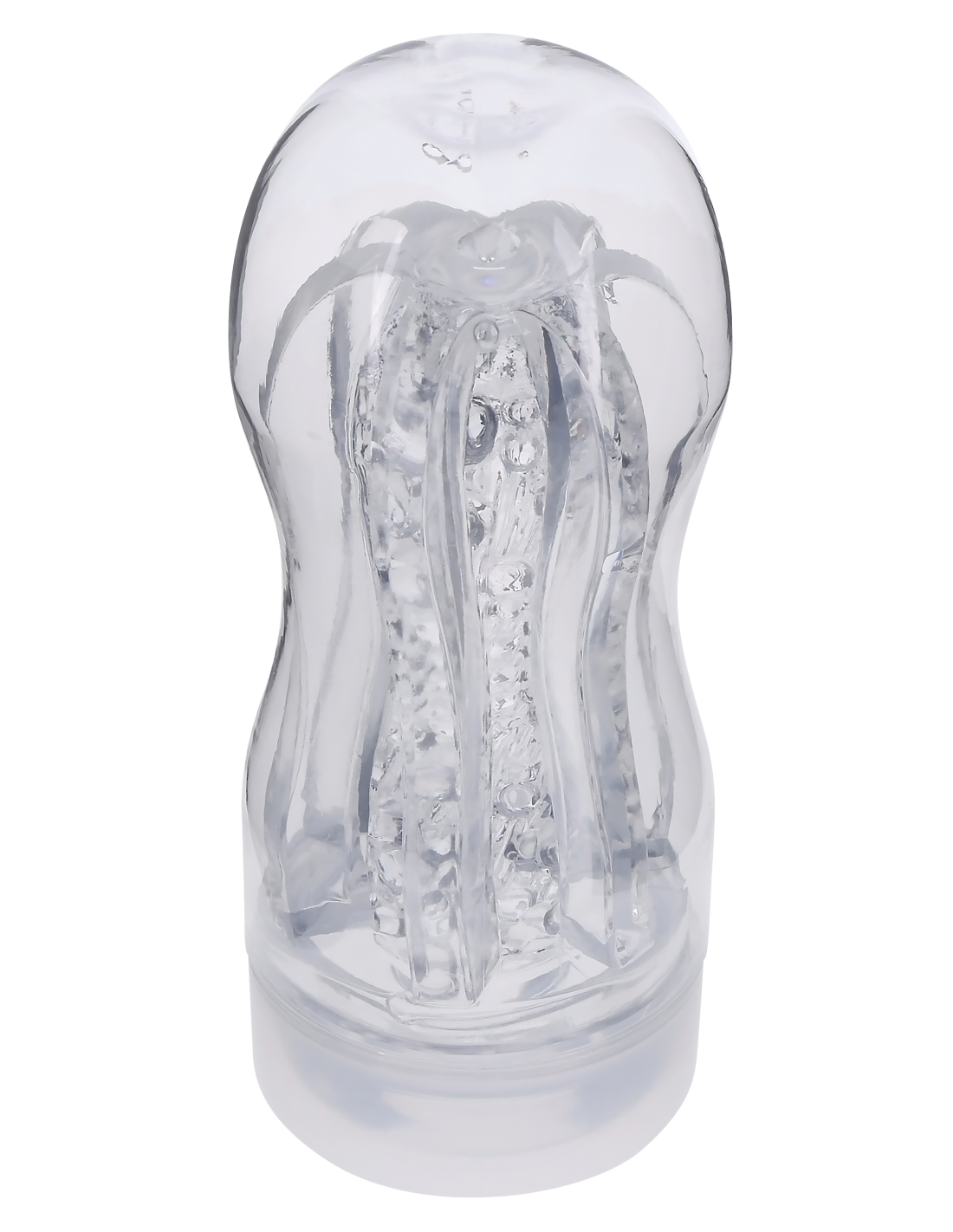 This portable stroker features a soft and squishy beaded inner channel nestled inside an ergonomic canister designed for a comfortable, easy grip. Vibrating C-ring included.