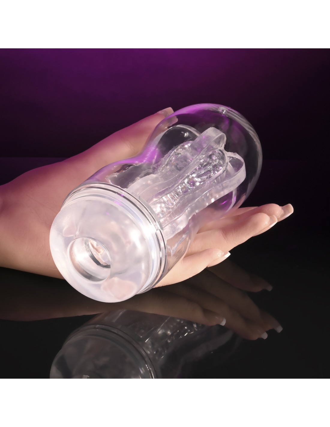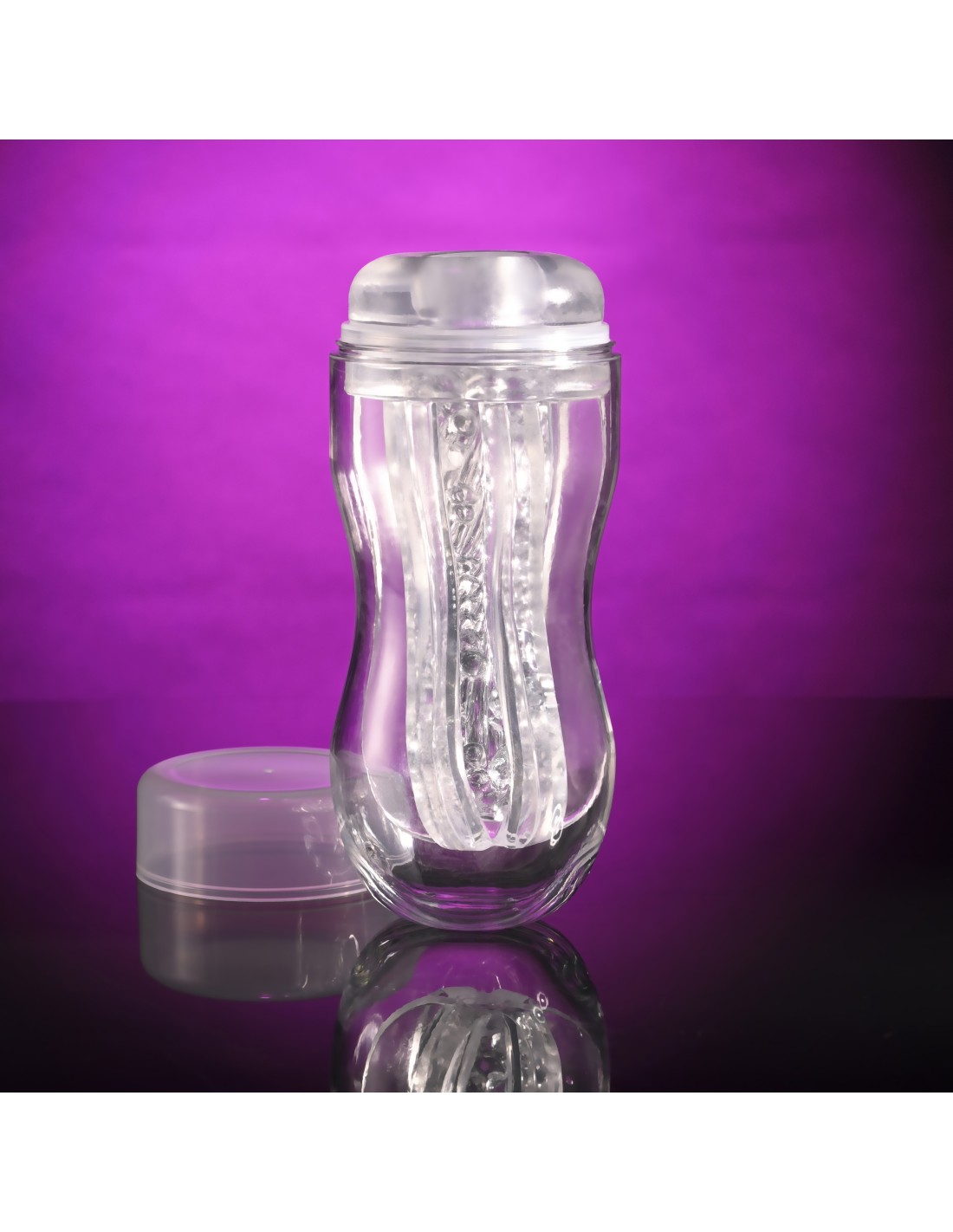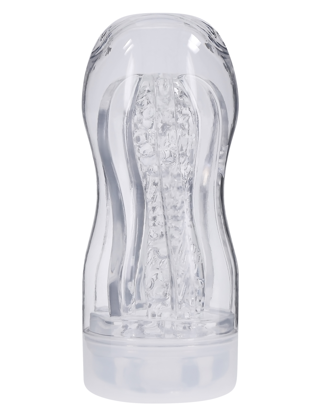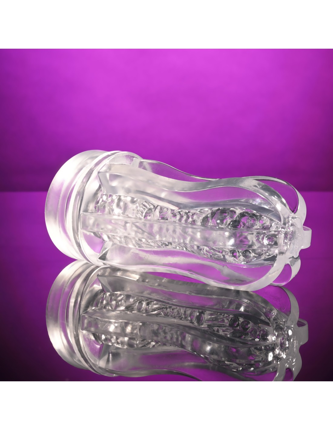 This portable stroker features a soft and squishy beaded inner channel nestled inside an ergonomic canister designed for a comfortable, easy grip. Vibrating C-ring included.