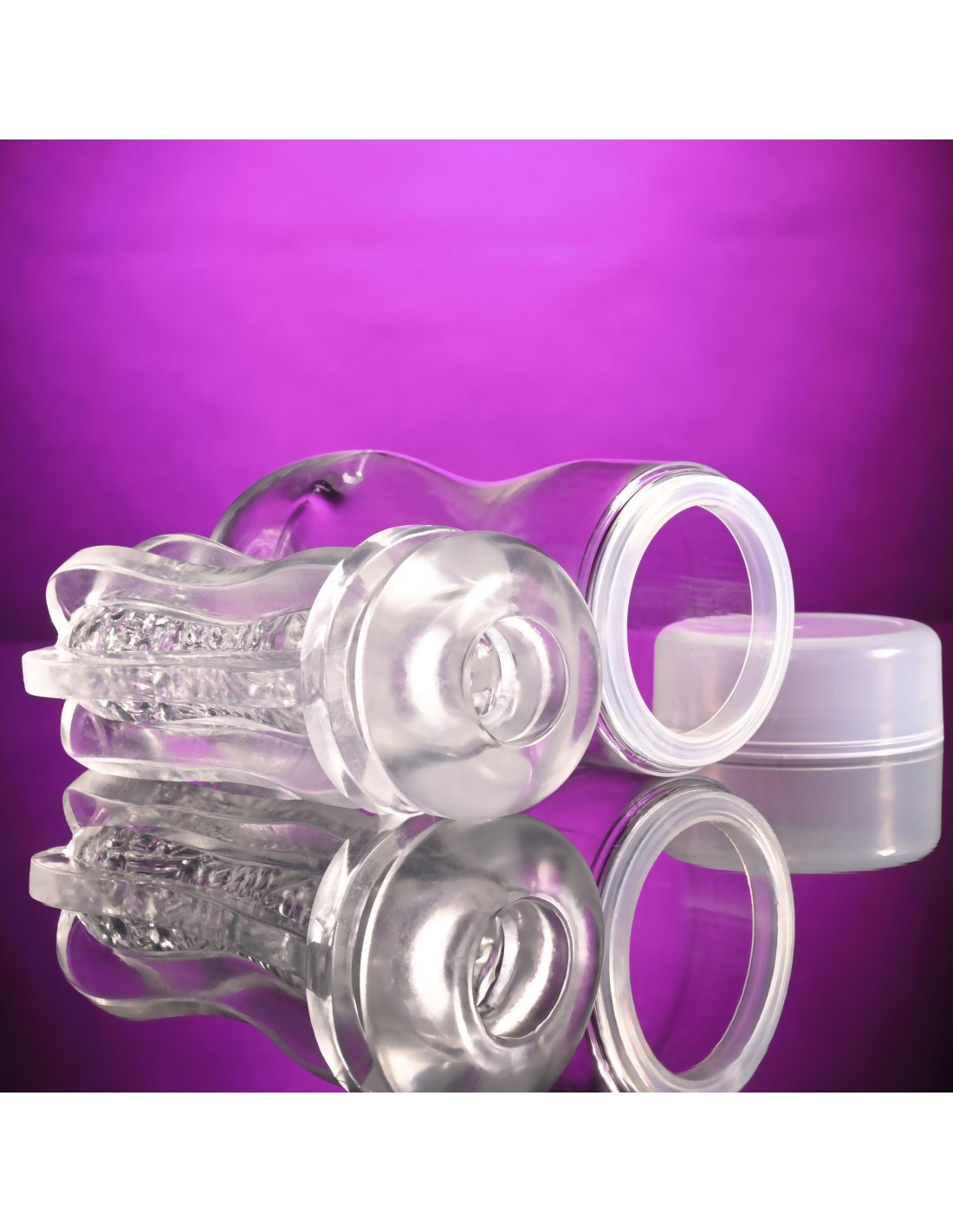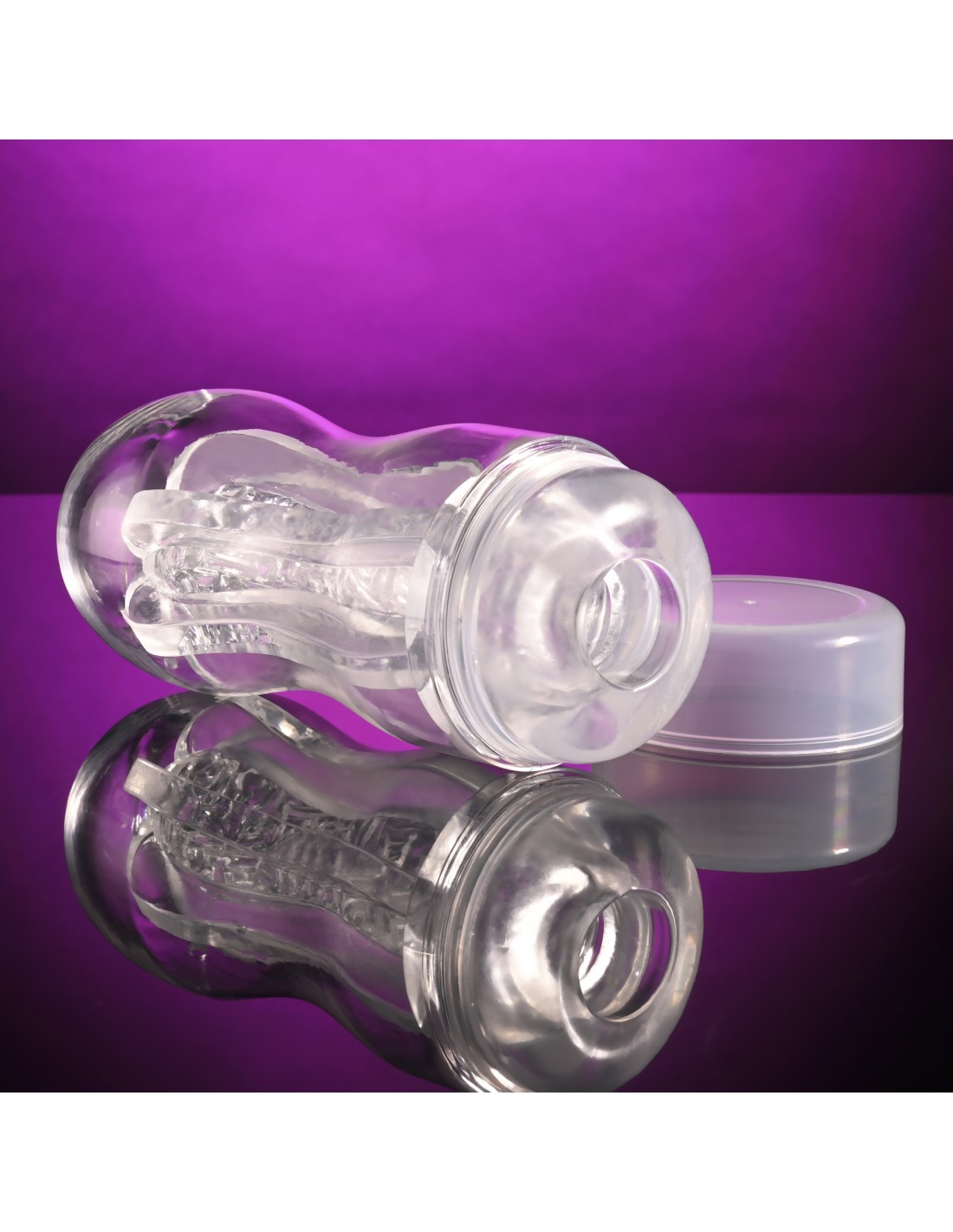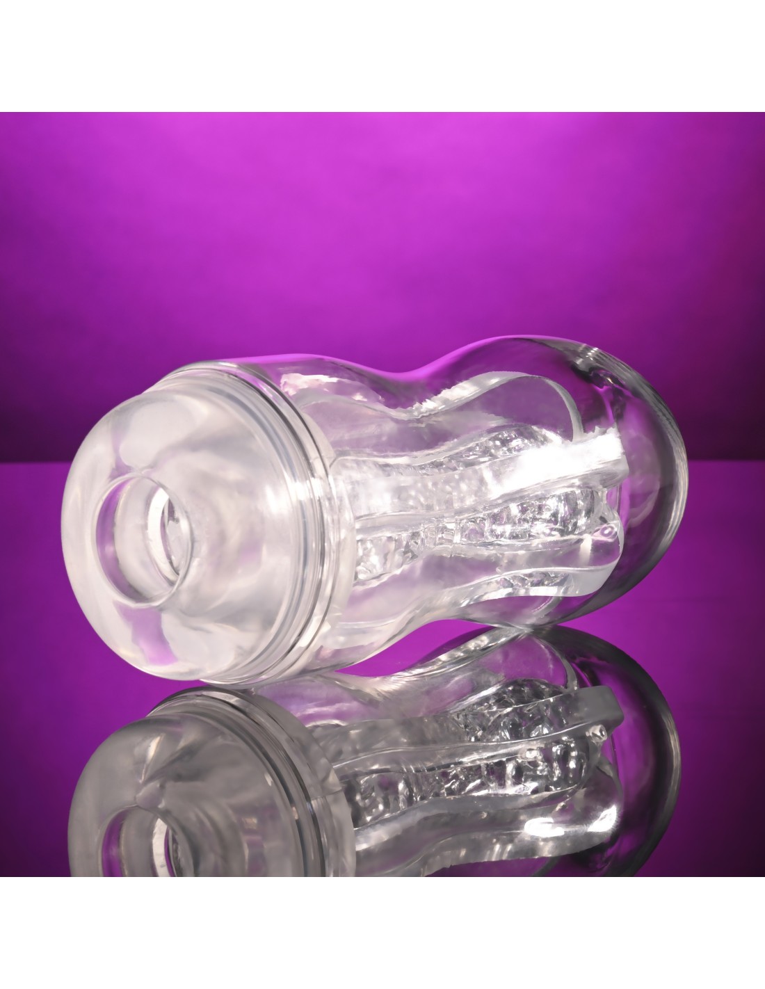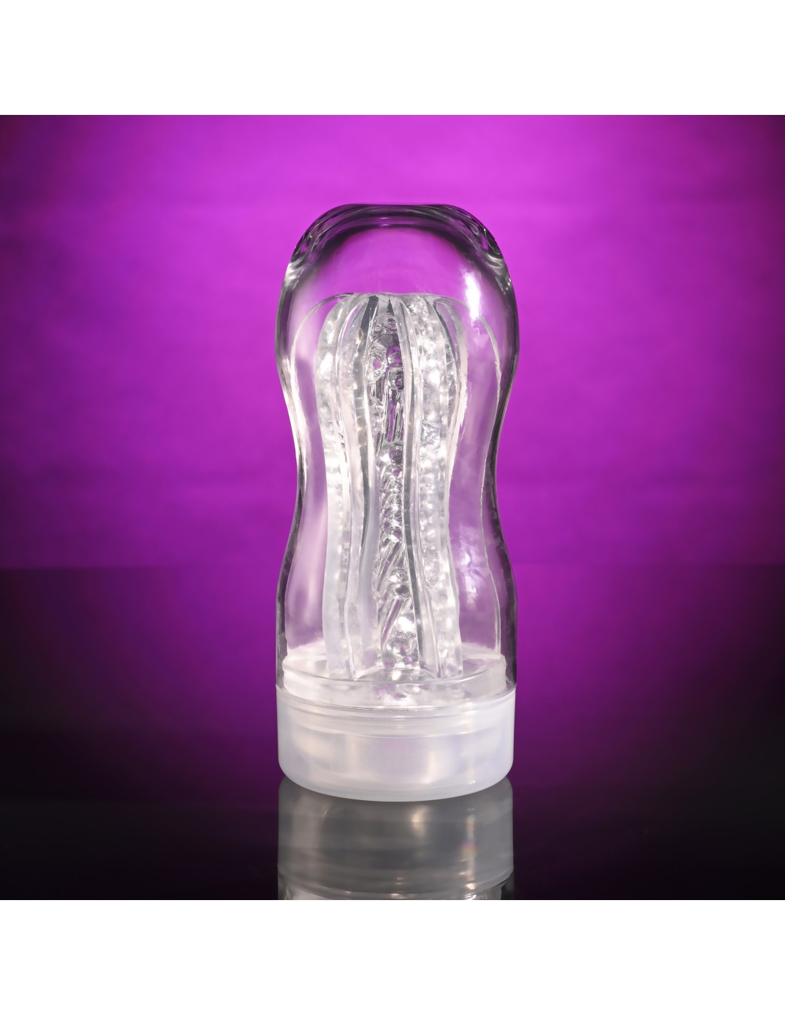 This portable stroker features a soft and squishy beaded inner channel nestled inside an ergonomic canister designed for a comfortable, easy grip. Vibrating C-ring included.