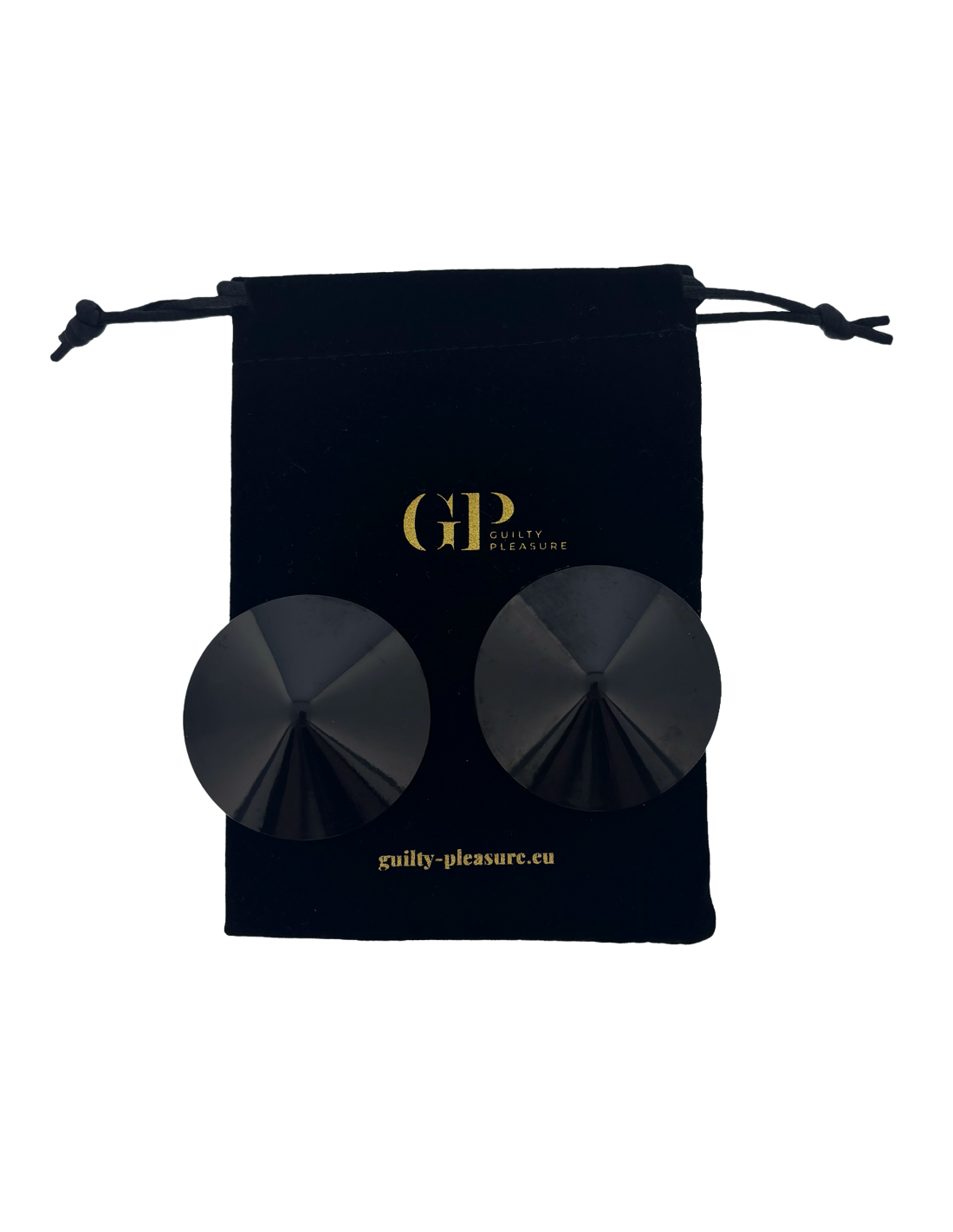 A striking statement in lustrous black — sculpted to seduce. Bold, unapologetic, and effortlessly elegant, the black Tempting Touch Covers bring an edge of refined provocation to any look. Crafted from polished black metal with a sleek pyramidal design, they capture and reflect light with every movement, drawing attention in all the right ways.