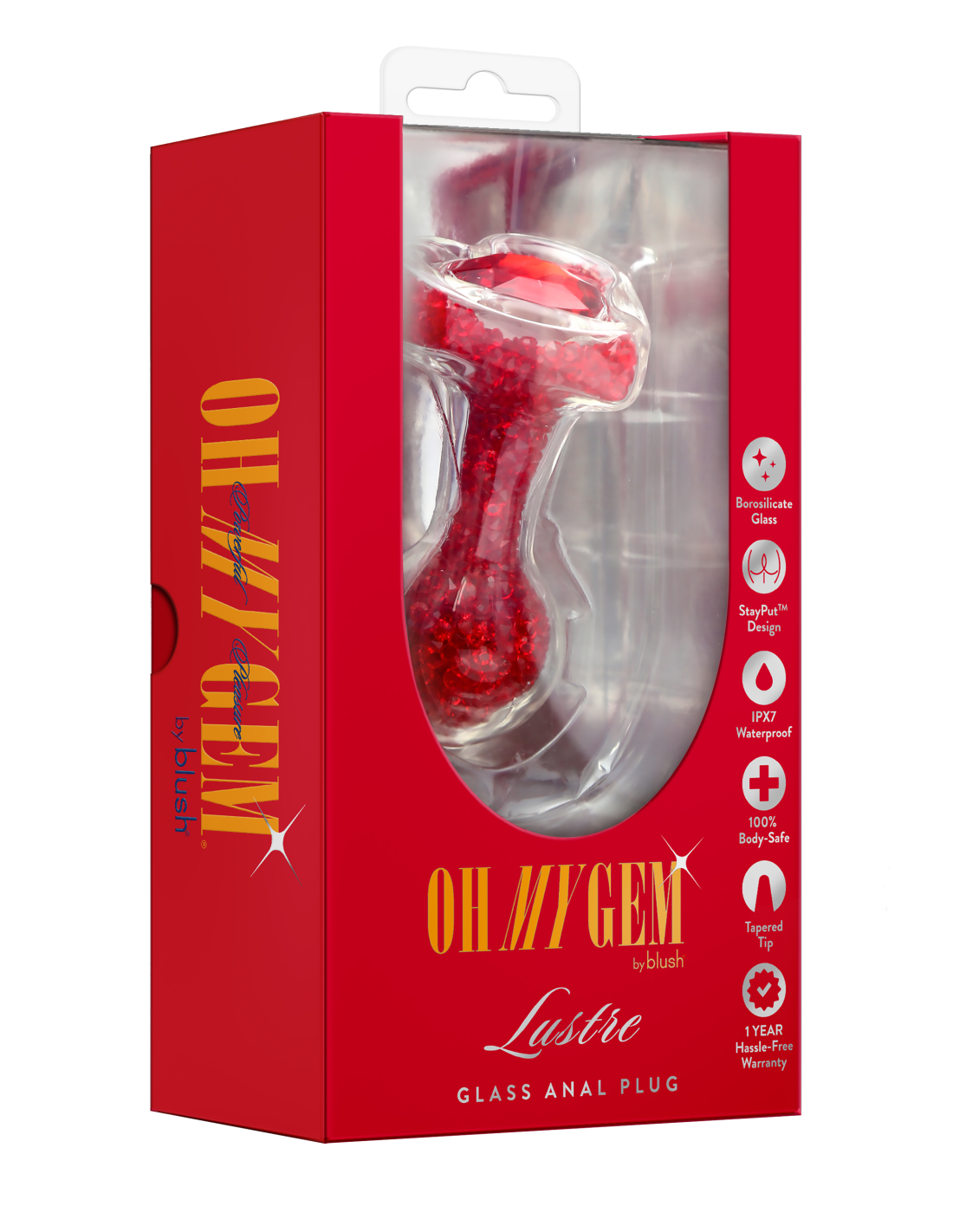 Radiate beauty with Oh My Gem Lustre, a luxurious anal plug inspired by the rich energy of the ruby gemstone. Meticulously crafted from premium borosilicate glass, Lustre’s smooth, rounded bulbous tip provides increased stimulation and a satisfying sense of fullness, making every moment more indulgent. Designed for elegance and excitement, its dazzling ruby-adorned heart-shaped base adds a touch of sophistication to every experience. Blush’s signature StayPut™ design ensures a secure, comfortable fit, while the pristine glass surface delivers satisfying pressure and precise stimulation. Perfect for temperature play, Lustre invites you to explore warm or cool sensations for an extra layer of pleasure. Body-safe, easy to clean, and undeniably beautiful, Lustre is a gem made for indulgence. A radiant addition to any collection, designed to captivate, comfort, and inspire intimate exploration.