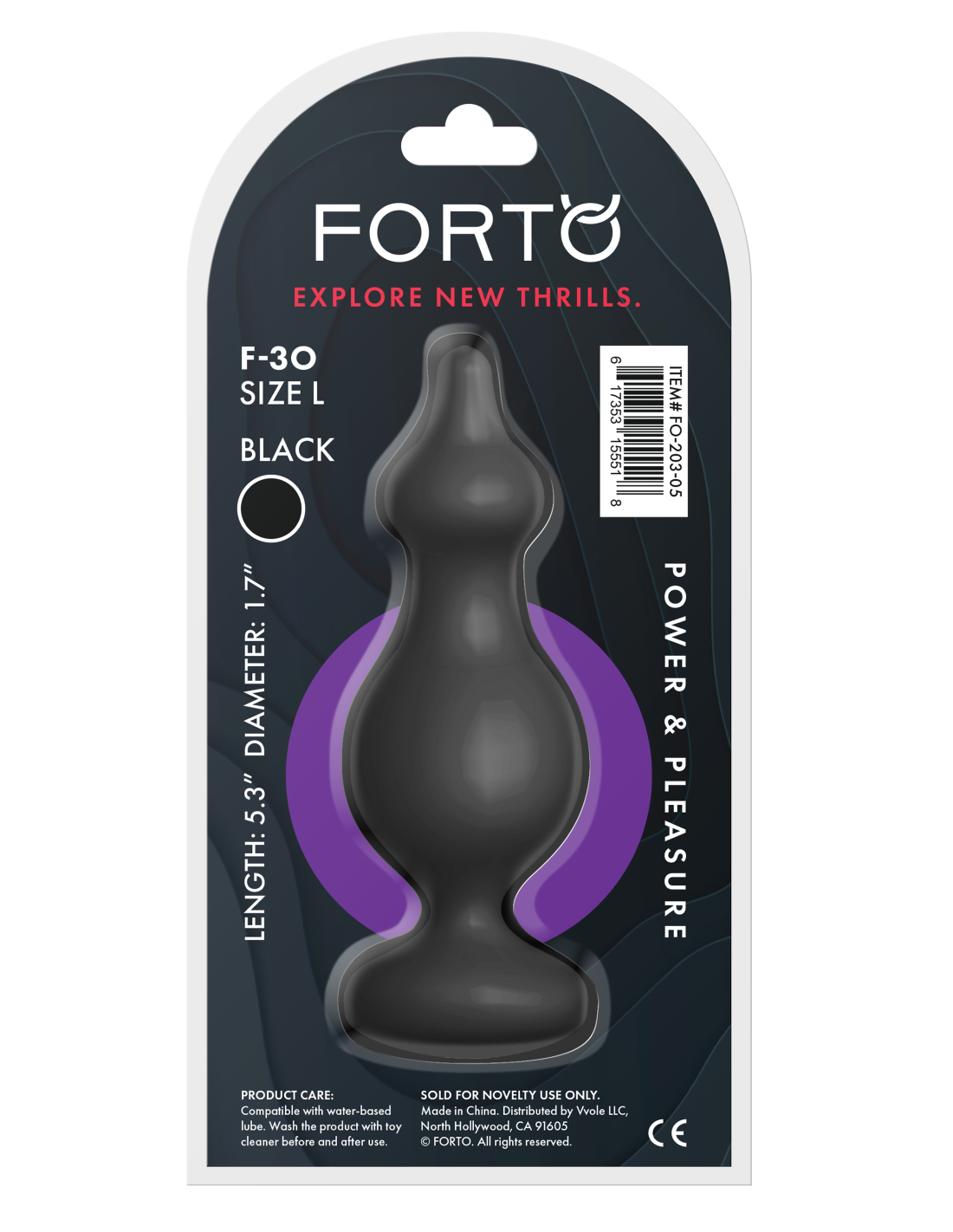 FORTO VIBRATING RIBBED PLUG WITH REMOTE CONTROL LARGE BLACK