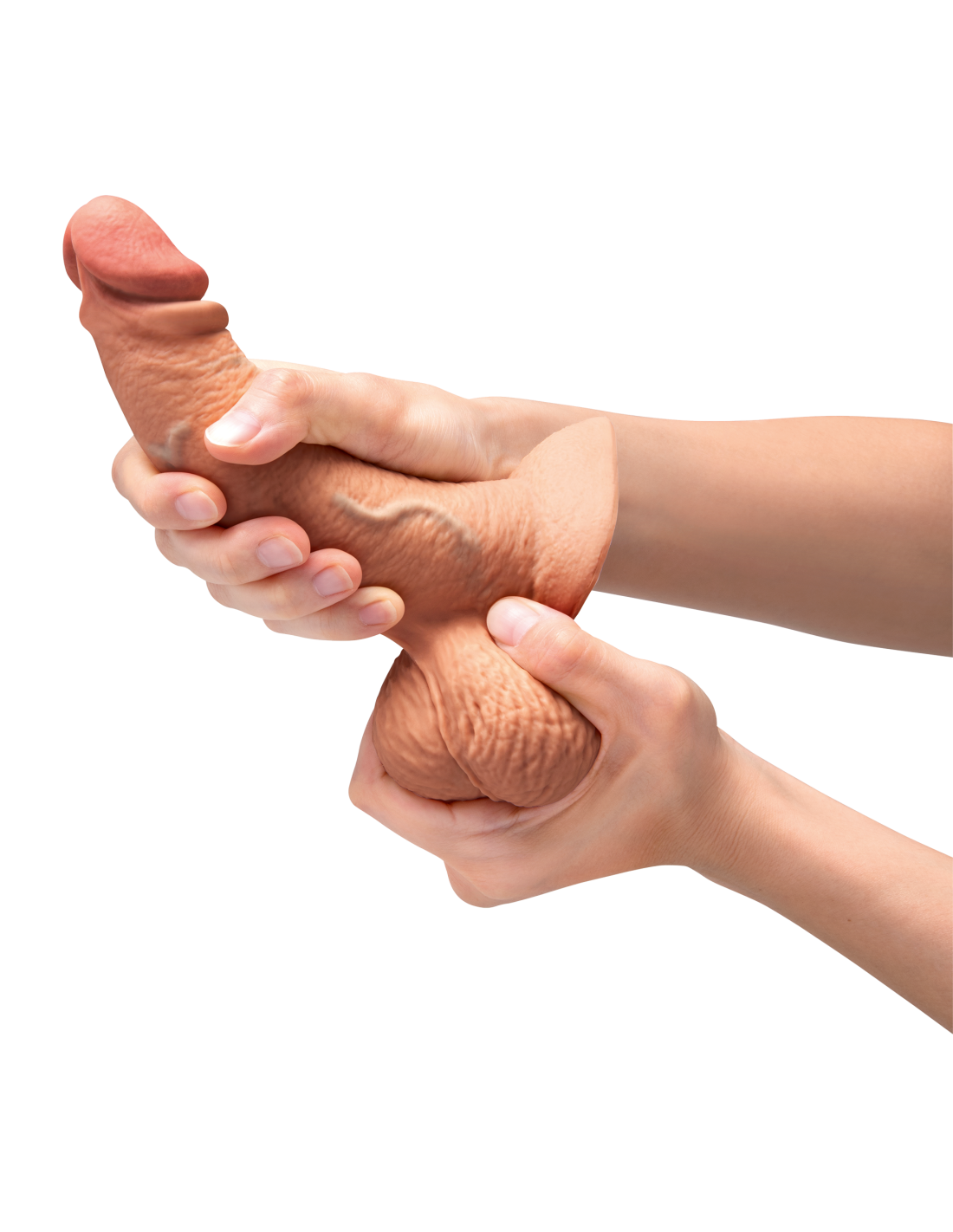 Prepare to be amazed by our groundbreaking SlipSkin technology! These masterfully crafted silicone dildos represent the pinnacle of realistic pleasure design, featuring an innovative color process typically reserved for porous materials – but crafted in body-safe, premium silicone. Each piece moves and feels incredibly natural, responding to the body's rhythm just like real flesh. The attention to detail is extraordinary, from the expertly sculpted tip to the amazingly lifelike, moveable testicles. The 8" model features a thoughtfully designed flat base perfect for harness play, while the 9" and 10" options offer versatile compatibility with all harness styles, including vac-u-lock. Whether mounted against a wall, secured to a flat surface, or worn in a favorite harness, these dildos deliver an unparalleled realistic experience.