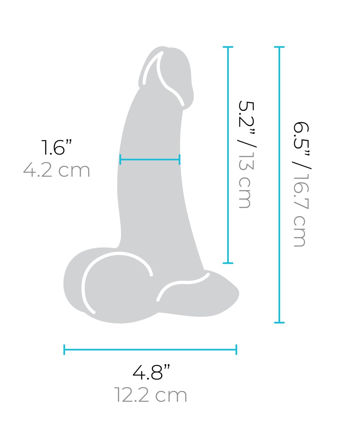 Made with a lifelike tapered base that mimics the real feeling of testicles, the Slipskin Curvy fits perfectly into most standard-sized harnesses for all of your lifelike fantasies.