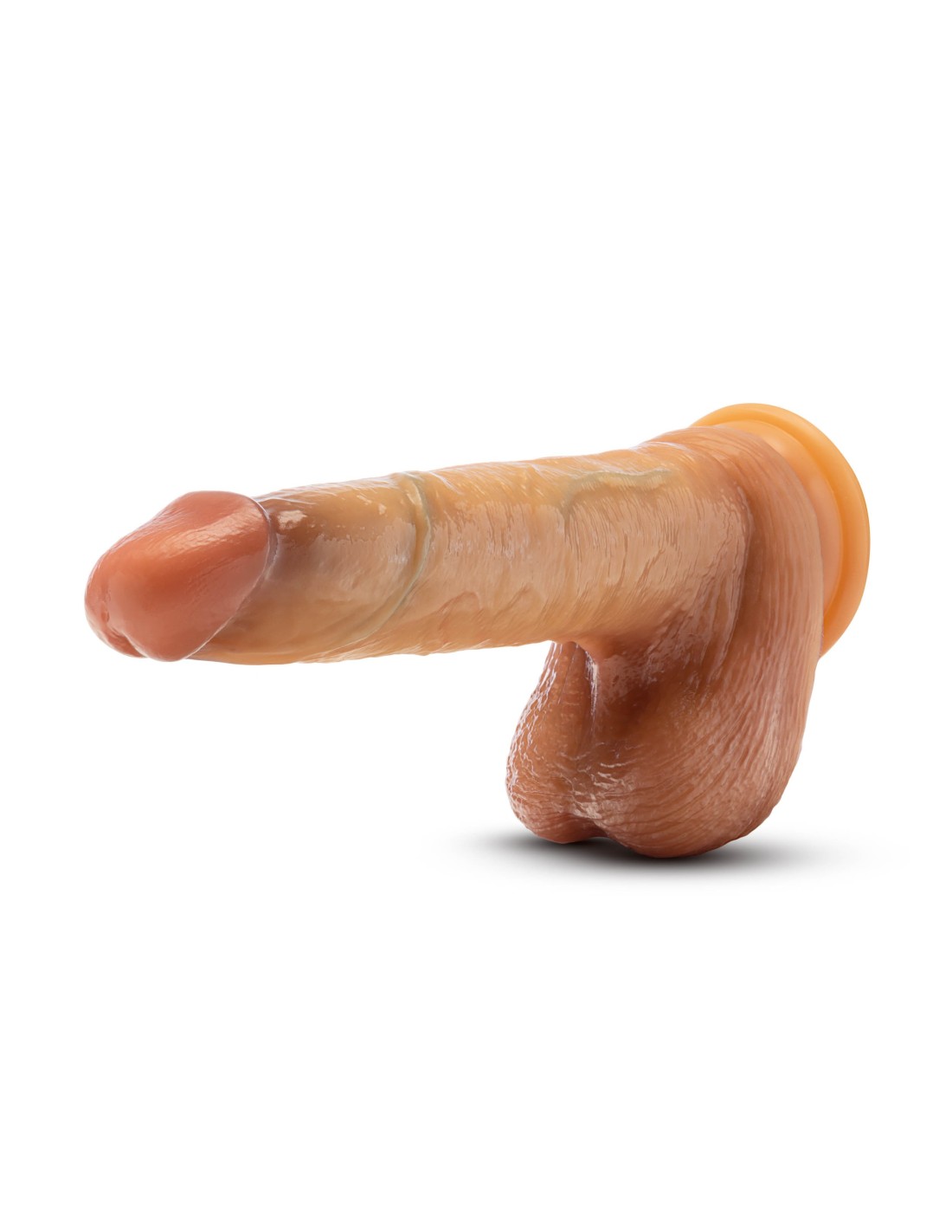 RENAISSANCE DAVINCI 8 INCH SLIDING FORESKIN DILDO WITH SQUEEZABLE BALLS TAN