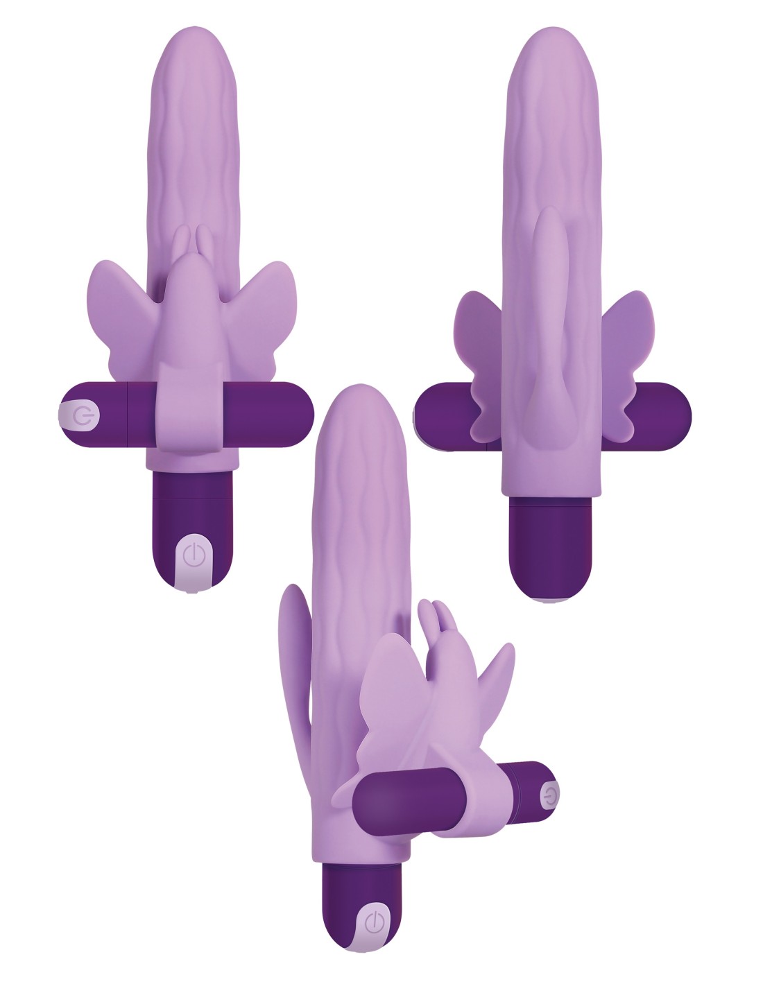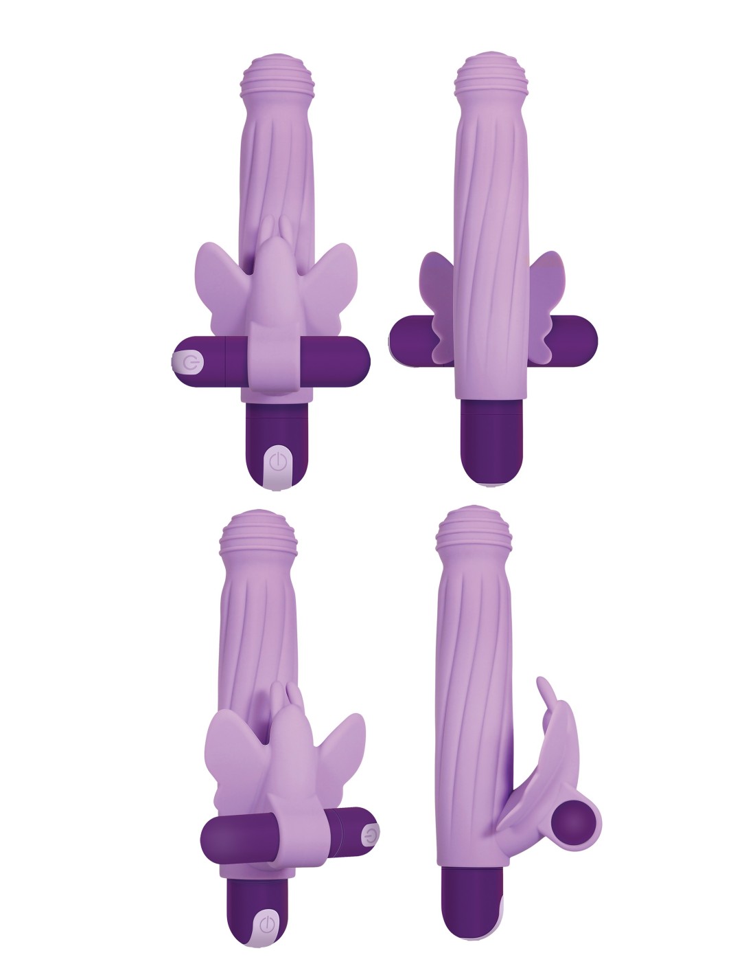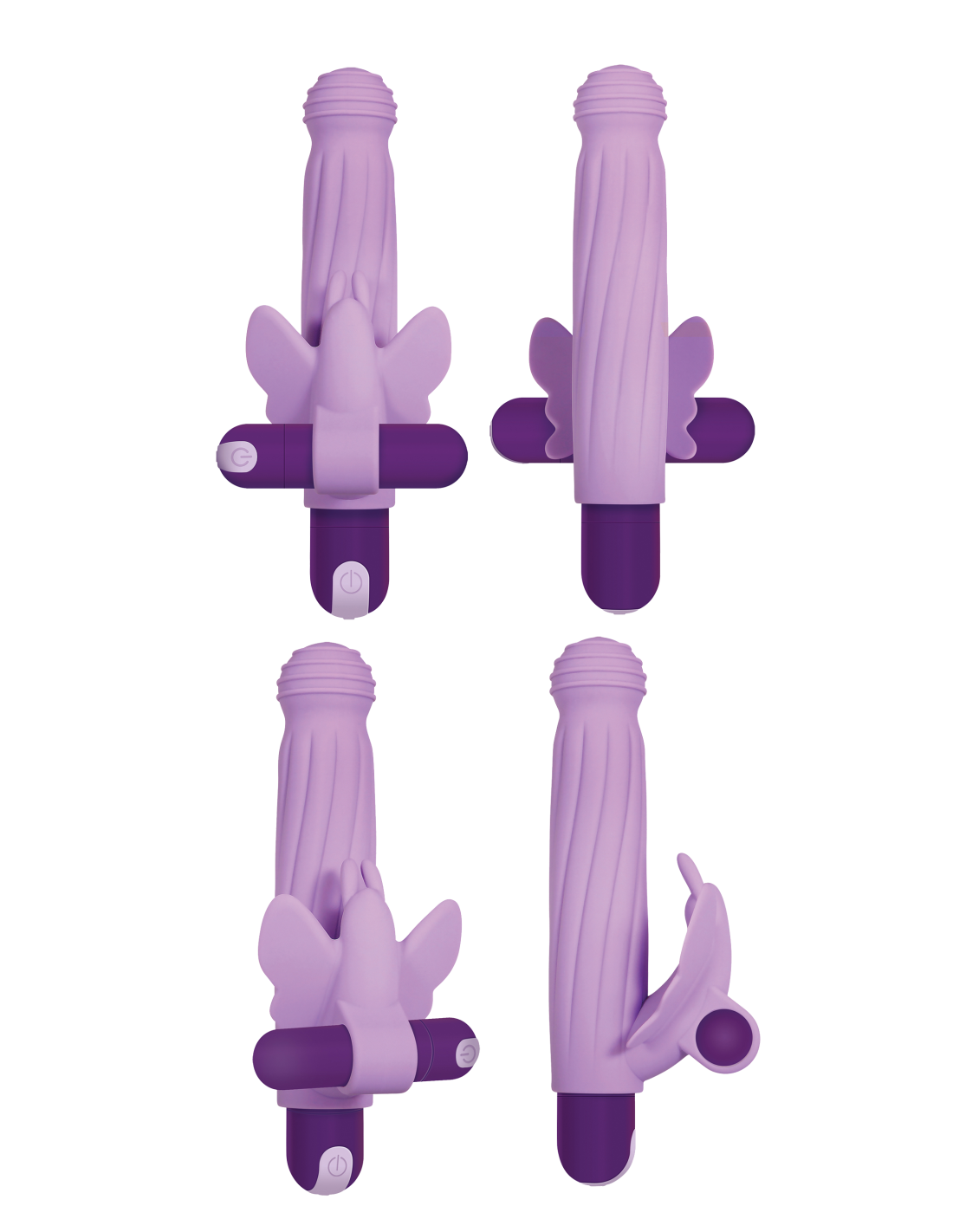 Regálate una nueva experiencia de placer cada vez que abras tu Kit Mariposa de 7 piezas. Elija costillas cosquillas con una punta de punto G, texturas verticales suaves con una cabeza bulbosa y regordeta, una manga acolchada con una puerta trasera sorpresa o un tapón anal suave y cremoso: cada una de estas formas sexys se deslizan sobre su 7 velocidades de 10. -inch plus vibe para crear un juguete único y poderoso en todo momento. No olvides deslizar la bala de 10 velocidades en la pieza del clítoris en forma de mariposa para obtener el pièce de résistance: ¡un impulso extra de felicidad que te llevará a la cima! La bala también viene con su propia funda con bucle y todo el kit es completamente sumergible en agua, para que puedas explorar en el baño o la ducha. Limpie con un limpiador de juguetes y enjuague con agua tibia.