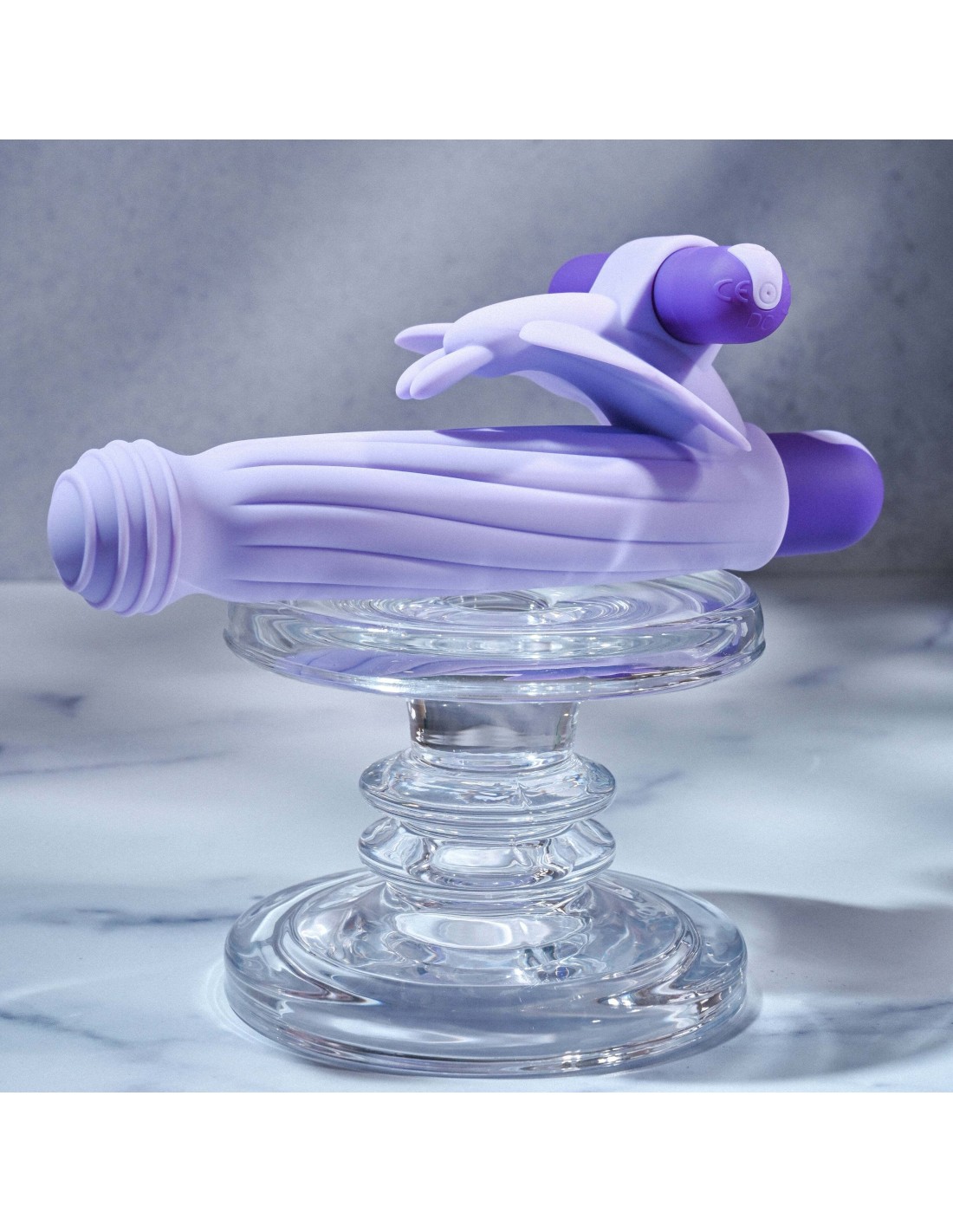 • Tres diseños únicos de fundas intercambiables se deslizan sobre el vibrador: acanalado, con punta de bulbo y con forma de bulbo. acolchado