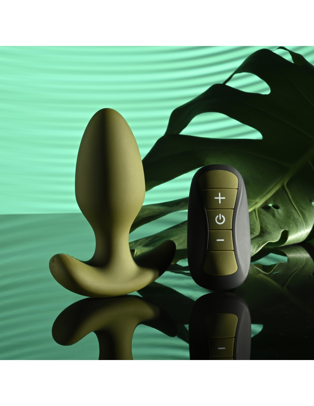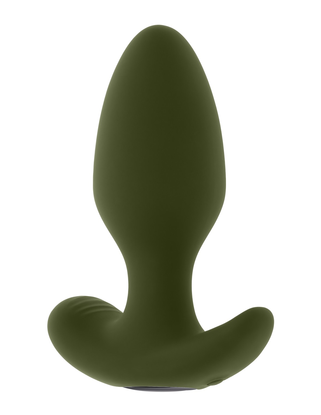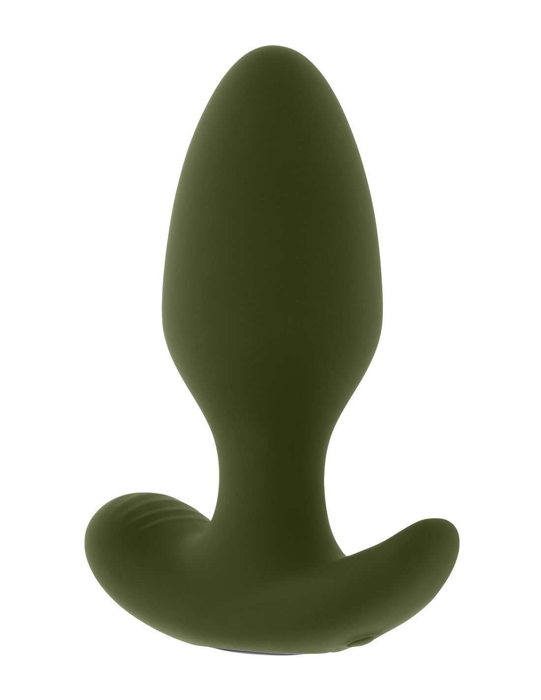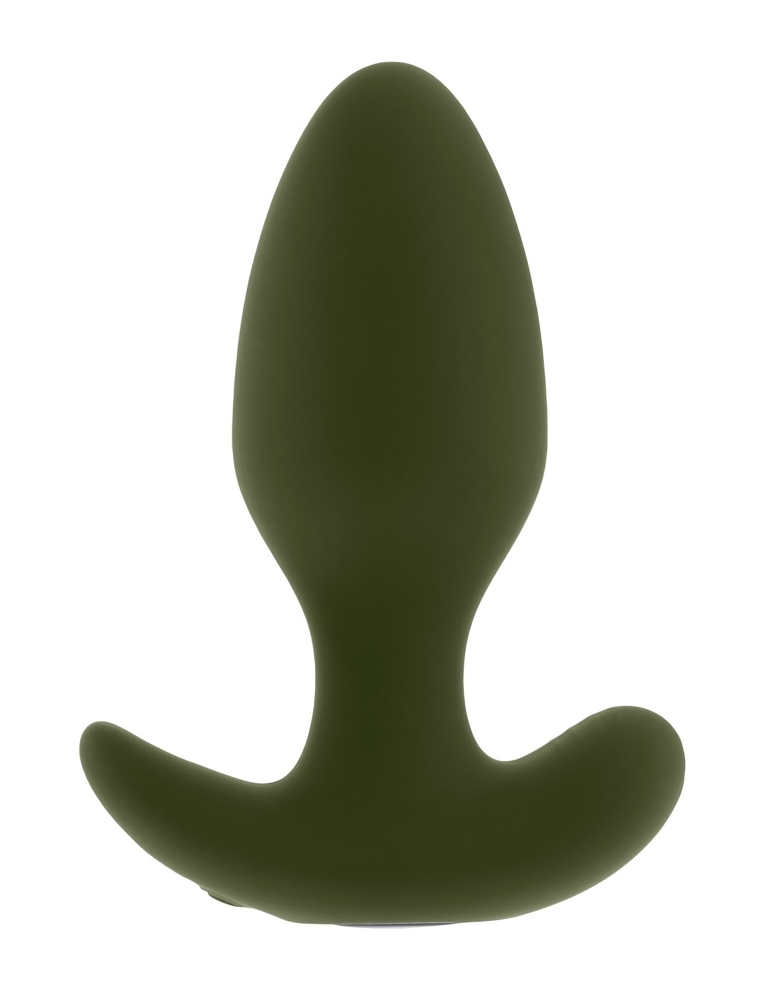 This chunky vibrating plug has a friendly bulbous shape and a tapered round tip for smooth entry. Its powerful motor operates by remote control or with one easy button on the wide safety base.