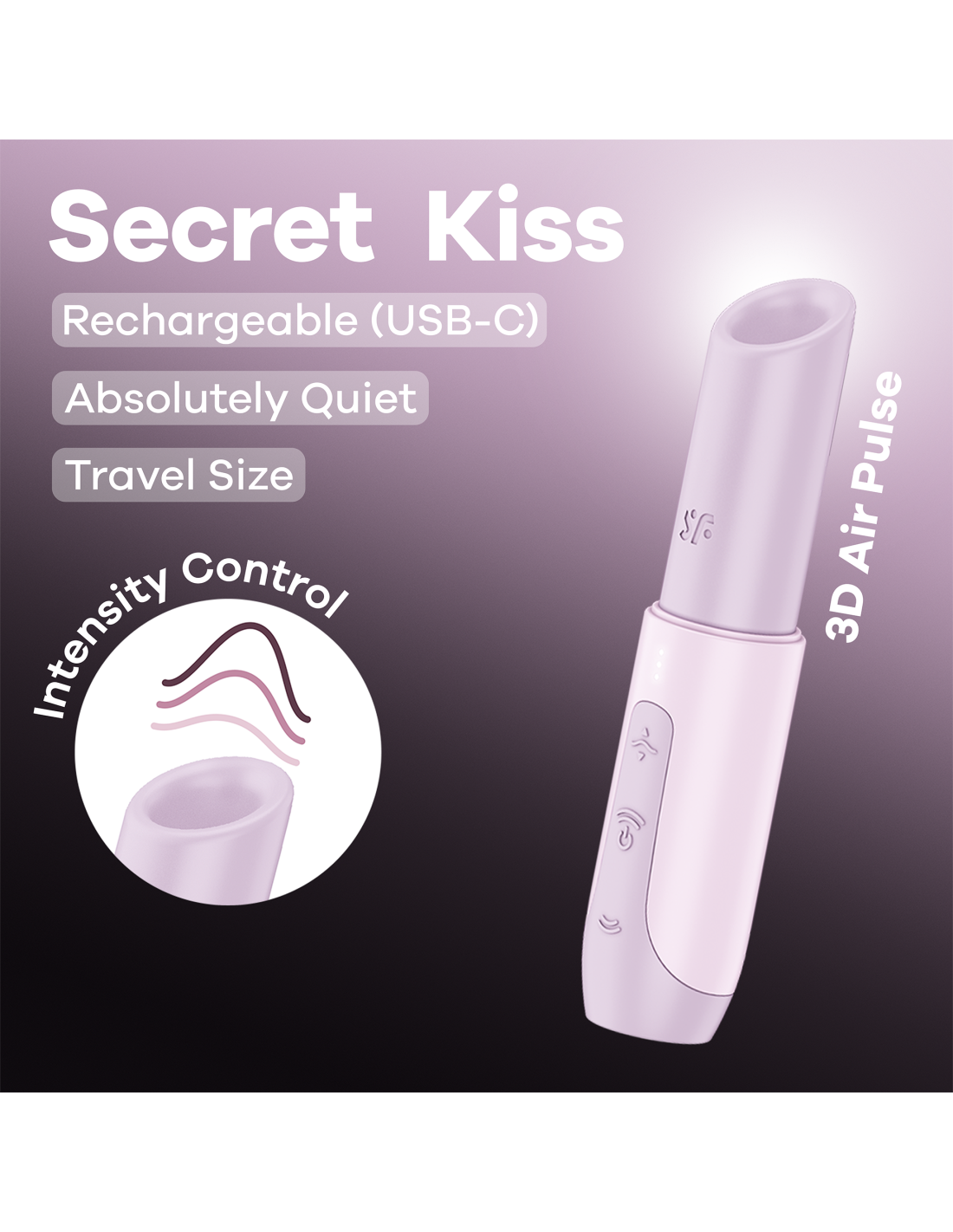 The Secret Kiss is your travel-ready companion, offering a hygienic design, touch-free stimulation, and powerful programs in a compact form that fits discreetly into any bag.