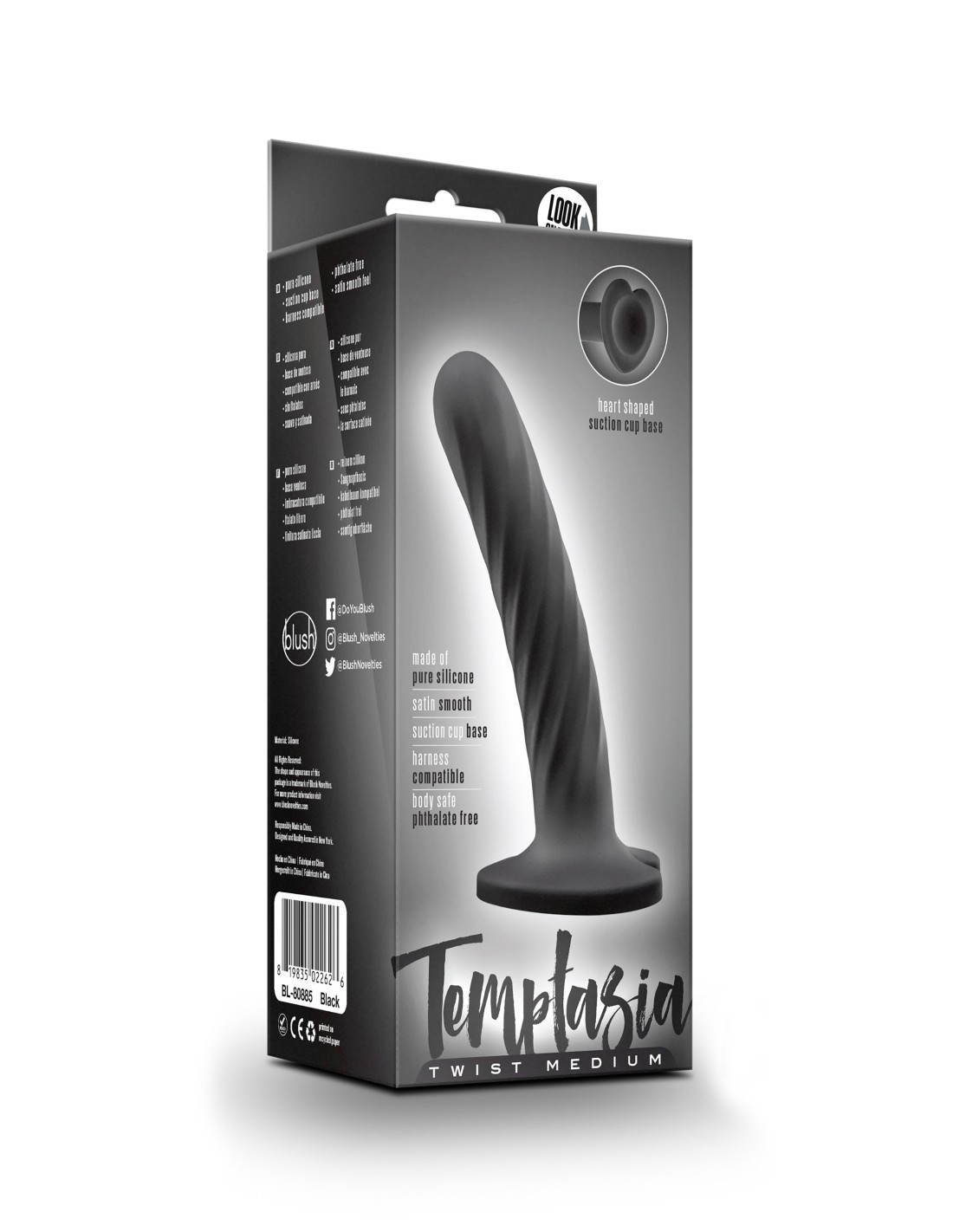 Temptasia Twist Medium presenta un perfil delgado y una textura arremolinada. La linda base en forma de corazón incluye una fuerte ventosa y es compatible con arnés. Ya sea solo o con tu pareja, Temptasia Twist es una adición divertida a tu tiempo de juego. El ancho de 2,5 cm (1 pulgada) del Twist Medium y su longitud insertable de 11,4 cm (4,5 pulgadas) lo convierten en una excelente opción para el nuevo usuario de consoladores o para cualquiera que disfrute de juguetes más cortos y delgados. Hecho 100% de silicona curada con platino, es seguro para el cuerpo y fácil de limpiar: con agua y jabón suave.