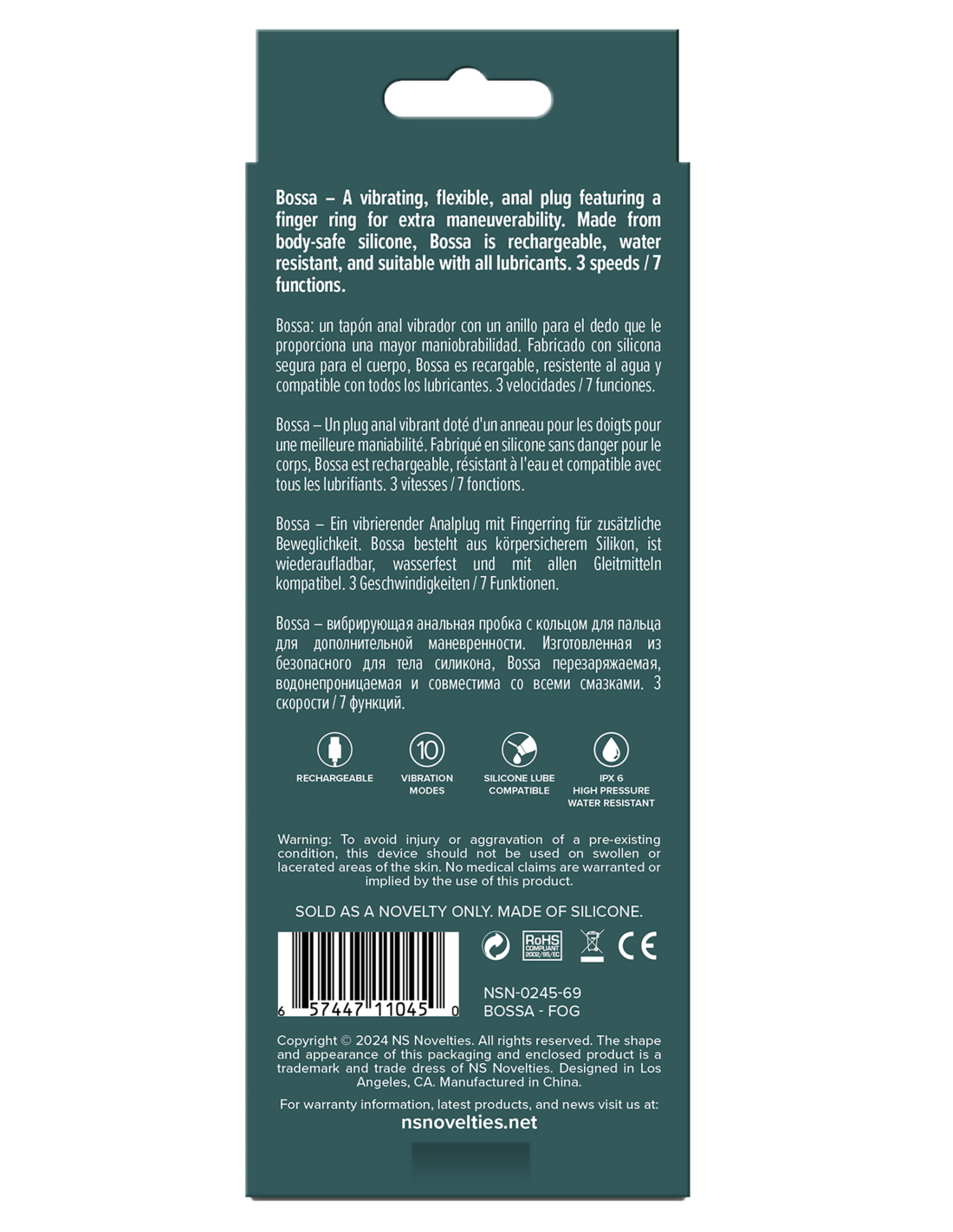 Bossa – A vibrating, flexible, anal plug featuring a finger ring for extra maneuverability. Made from body-safe silicone, Bossa is rechargeable, water resistant, and suitable with all lubricants.
