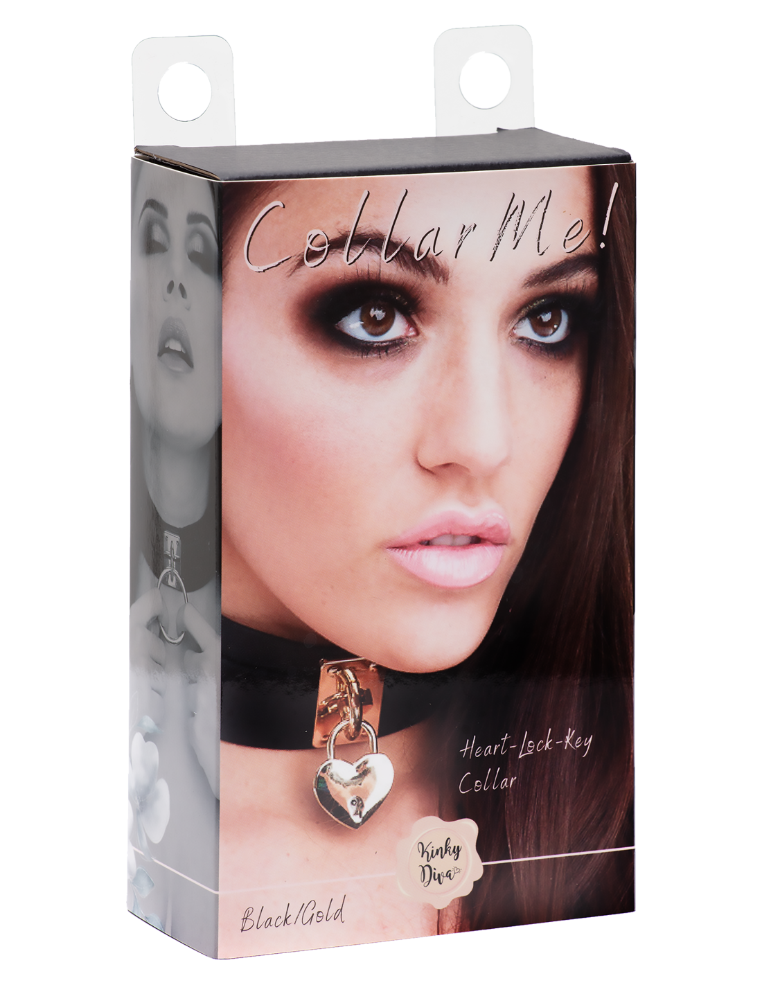 KINKY DIVA HEART LOCK & KEY COLLAR BLACK/GOLD