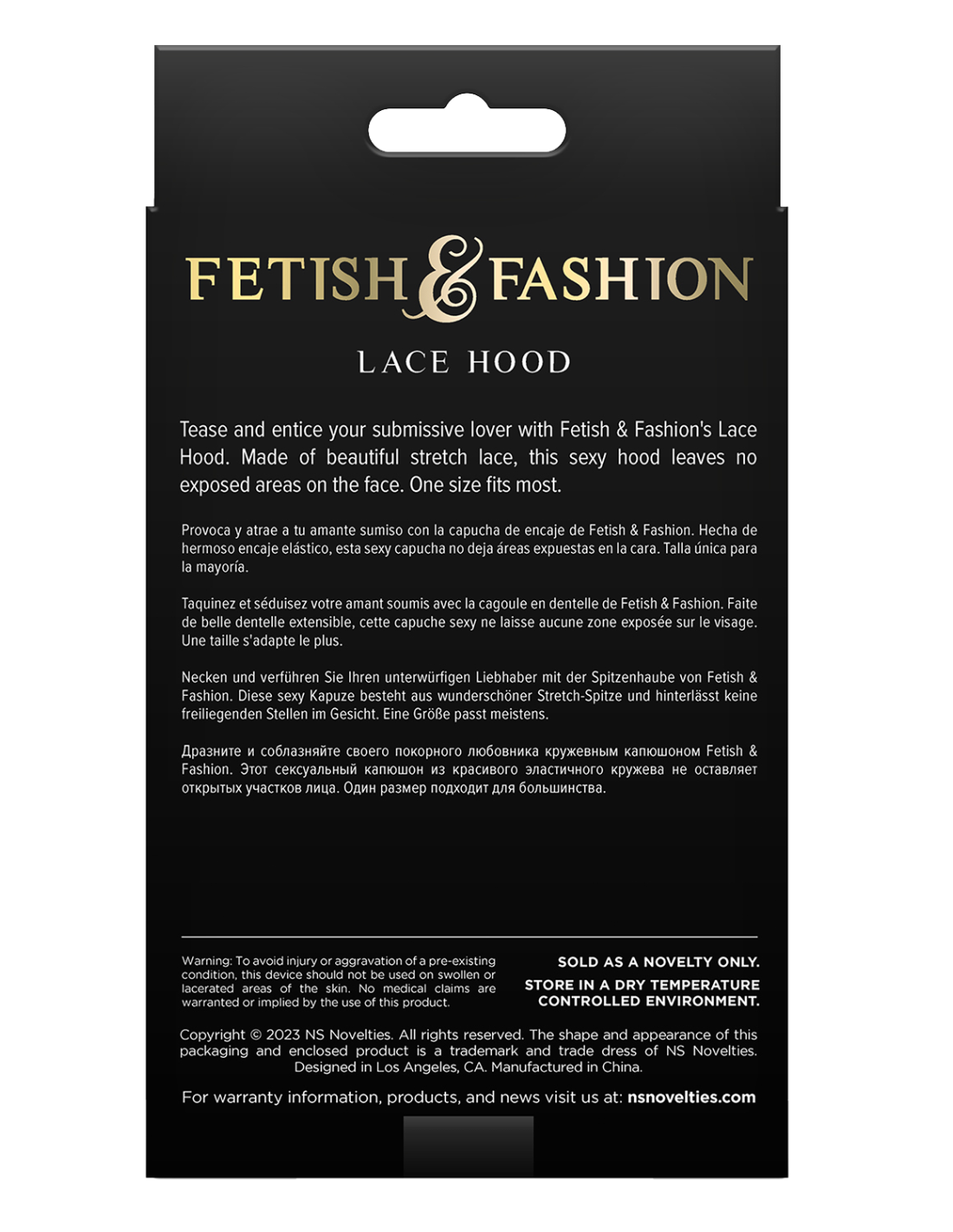 Tease and entice your submissive lover with Fetish & Fashion’s Lace Hood. Made of beautiful stretch lace, this sexy hood leaves no exposed areas on the face. One size fits most..