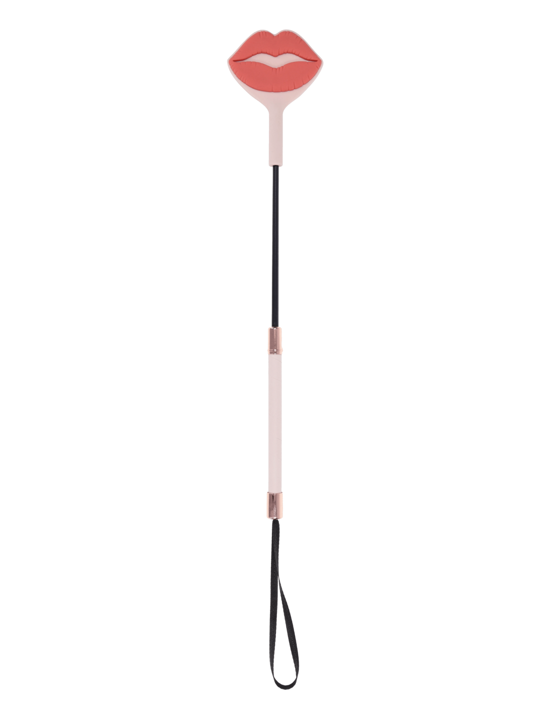 Seal the deal with a kiss they won’t forget. The Peaches ‘N CreaMe Kiss Crop features a soft, 100% silicone tip with a raised lip design that leaves a juicy kiss imprint with every well-aimed swat. The flexible yet firm tip delivers a sharp, satisfying sting that lingers on the skin and even longer in their memory. Adorned with gleaming rose gold accents and wrapped in peachy faux leather, the handle feels just as good in your grip as it looks. A matching wrist loop makes storage simple and impromptu play irresistible. With its flirty design and striking bite, this crop leaves a sensual mark that says, loud and clear: you were here.