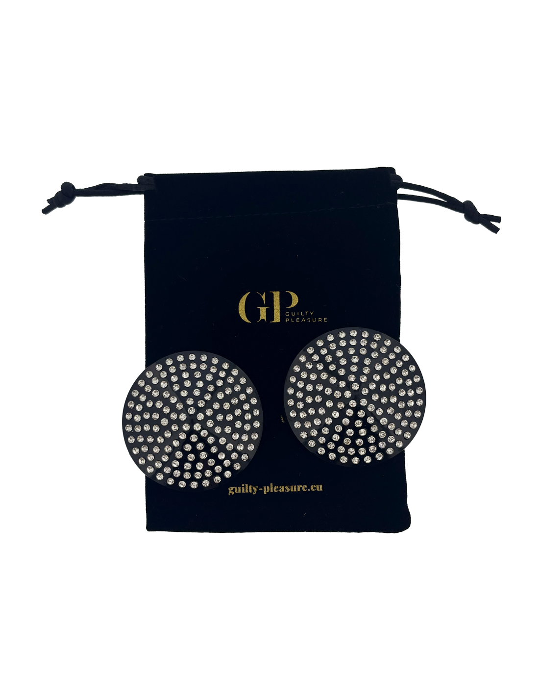 Every jewel tells a story — yours begins with a shadowed glimmer. The black Glimmer Gaze Covers redefine subtle seduction with their sleek, black metal base and sparkling black crystal accents. Designed to catch and reflect light with every movement, these reusable nipple covers offer a captivating blend of mystery and glamour. Whether worn beneath lingerie or boldly on bare skin, they command attention with a deep, alluring sparkle.