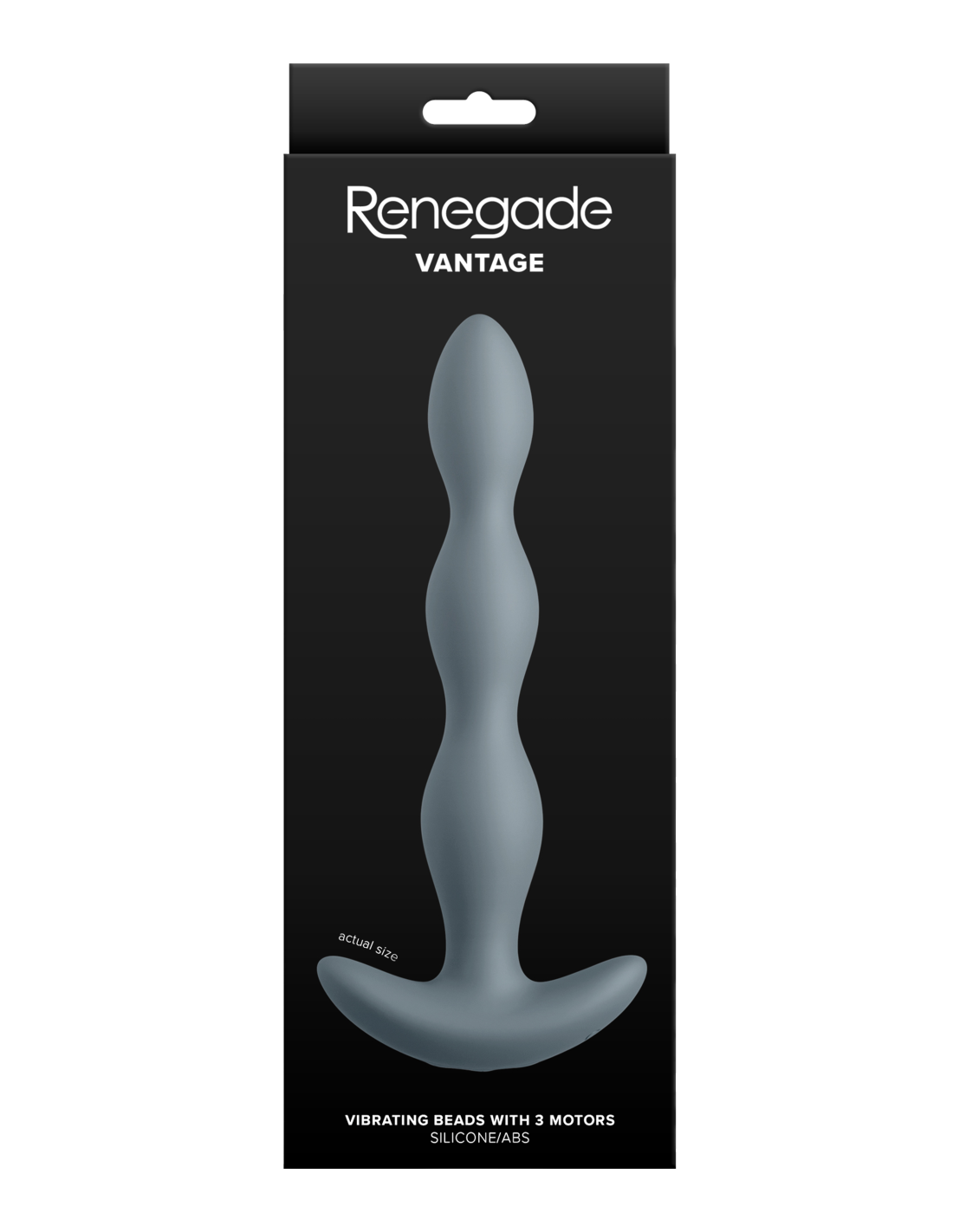Vantage by Renegade - vibrating beads crafted for smooth, satisfying stimulation. With 6.5 inches of insertable length and three strategically placed motors, Vantage delivers deep pleasure through one speed and four vibration functions. Made of body-safe silicone with ABS. Water resistant. Compatible with all lubricants.