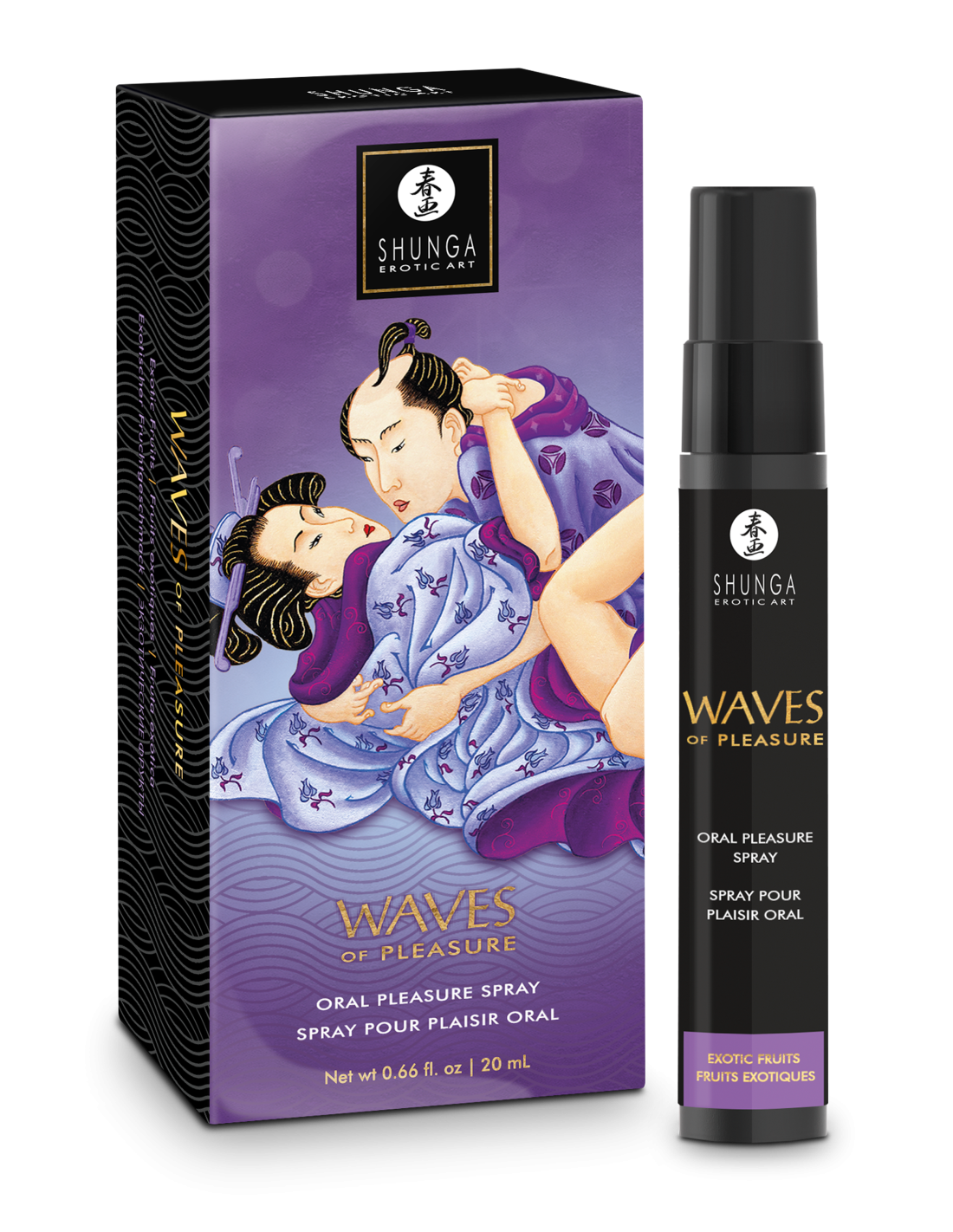 Oral pleasure spay Waves of Pleasure Exotic Fruits 20 ml. Treat your partner to an unforgettable oral sex experience. With a few delightful sprays, transform your mouth into an inviting source of pleasure, overflowing with saliva. Fabulous for caressing, licking and gently enveloping your lover's intimate area. Your partner will be begging for more...!