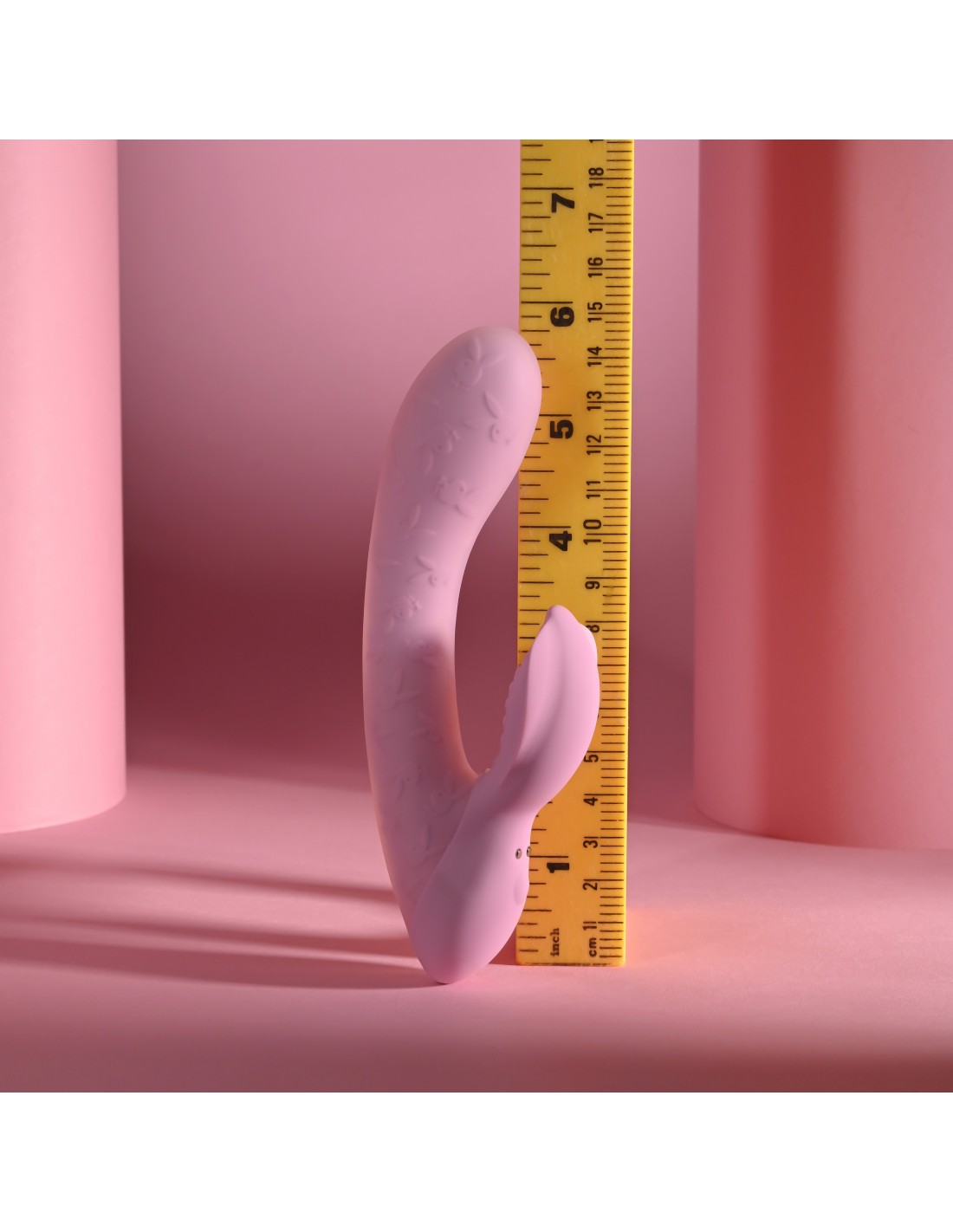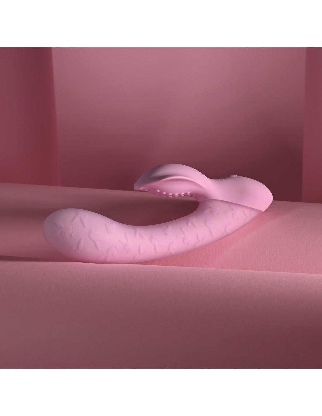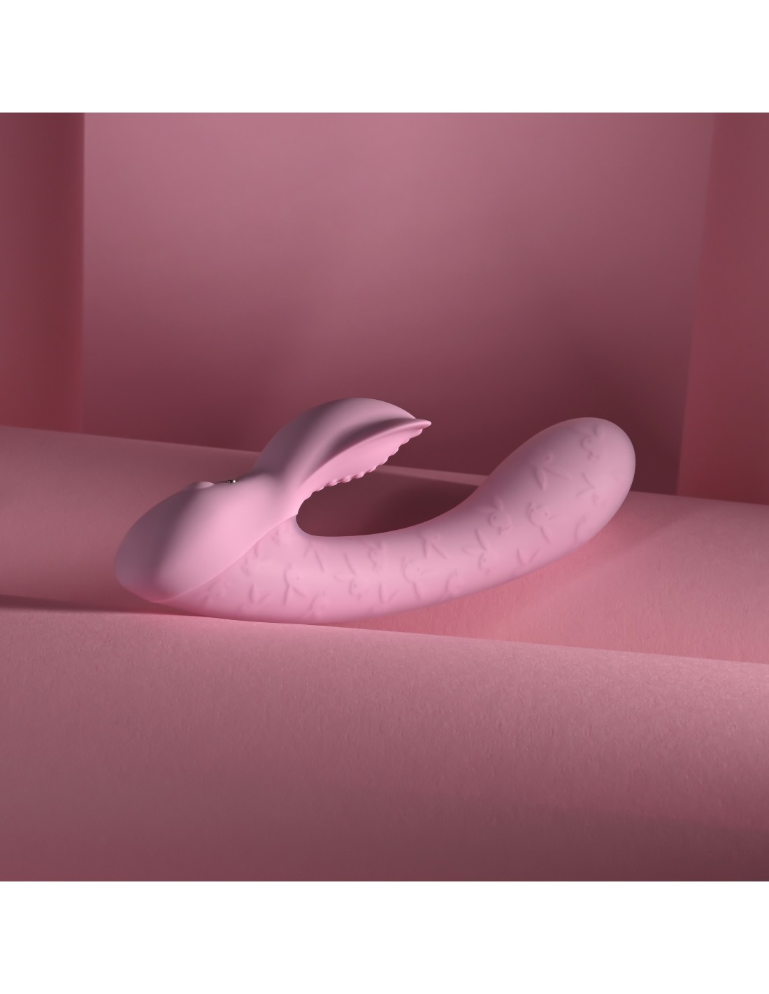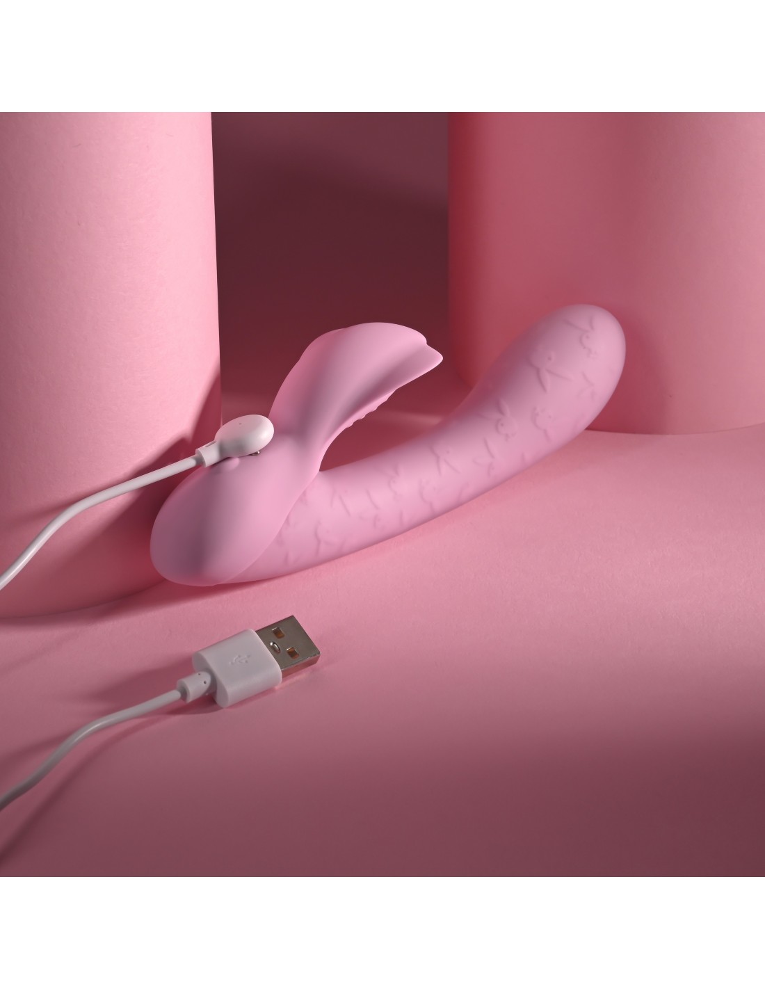 Rabbit Party tonight! Follow the bunny trail to this powerful dual Vibrator that’s got some hopping good features. The flexible, gently curved shaft is covered in Playboy rabbit heads that tickle as you play, not to mention the dual-layered silicone material which has a truly life-like feel you have to experience to believe. But that’s not all - this bunny has more tricks up its sleeve! In a twist on the usual rabbit ears, the stimulator shaft is shaped like a petal to surround the clitoris and drive vibrations deep into that primary erogenous zone for a whole new level of satisfaction. With a chunky handle and easy 1-button control for both motors simultaneously, you’ve hit the bunny jackpot!