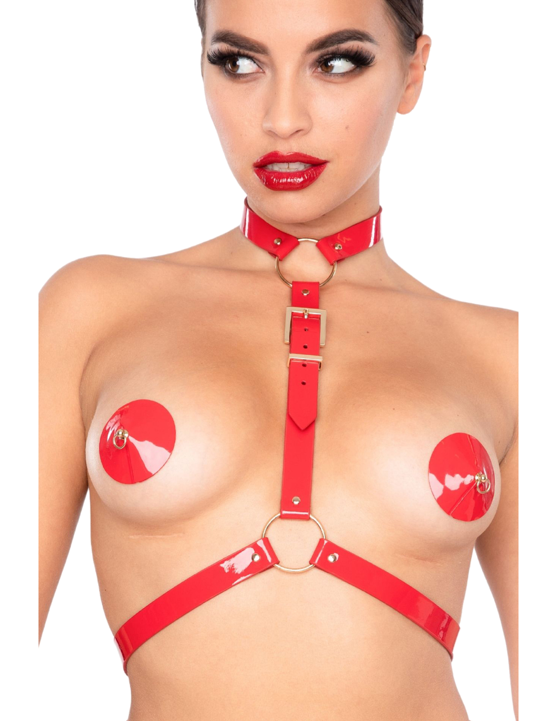 Kinky Diva – High Gloss Body Harness. This Kinky Diva High Gloss Body Harness is a real High Fashion Fetish Accessory. Super sensual and stylish on your bare skin, but also great to wear over a super sexy lingerie set or in combination with red mesh or fishnet items. Super Glam! This Body harness is of course also perfect in combination with Kinky Diva High Gloss BDSM items.