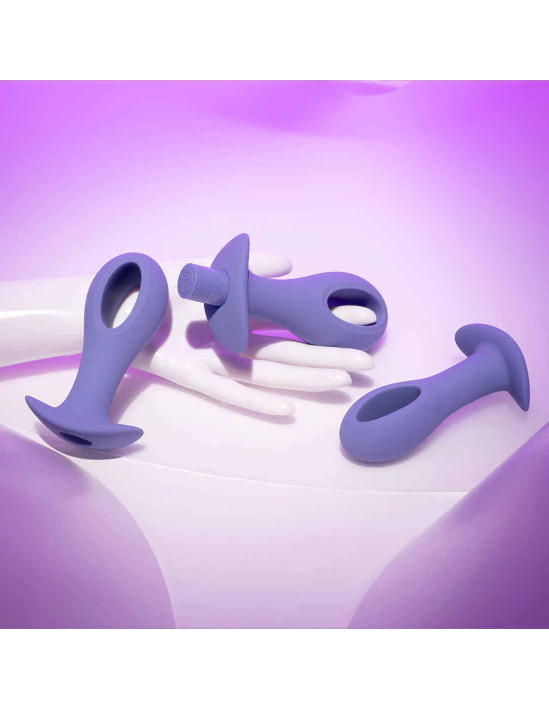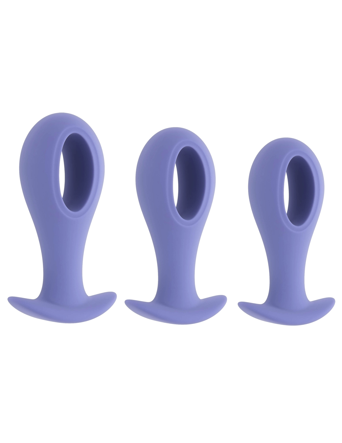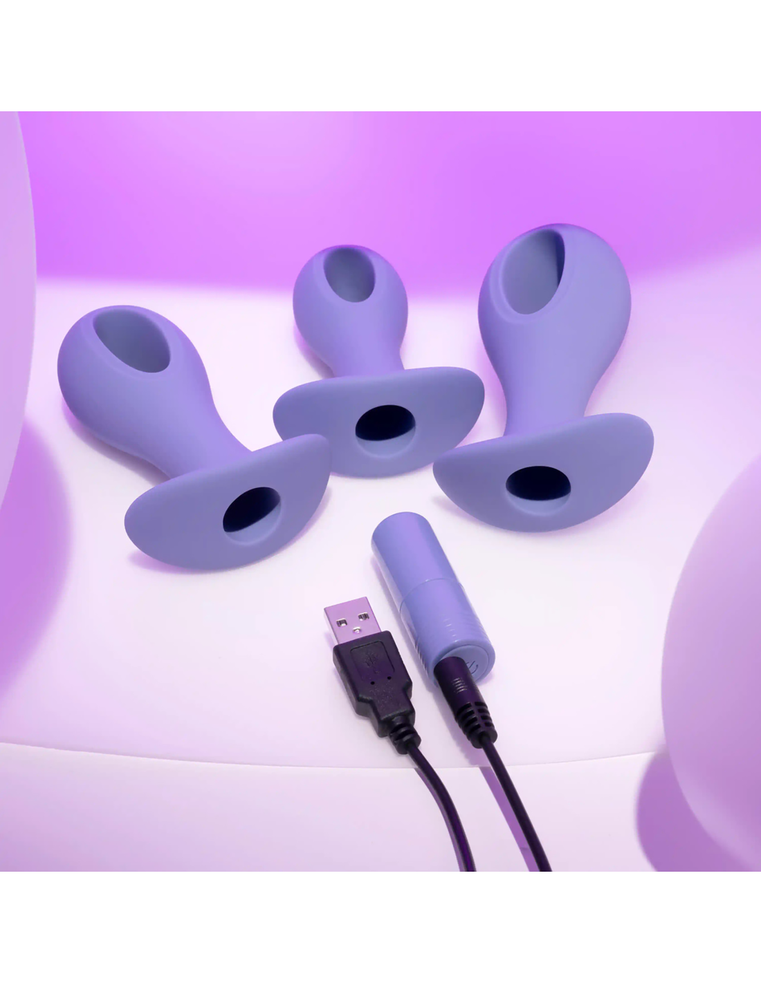 These oval-shaped hollow-center silicone plugs are flexible at the head and stem for easy entry with their unique ‘hole punch’ design. Powered by a robust vibrating bullet that tucks into each base seamlessly, choose from 3 sizes, each anchored by a wide safety base.