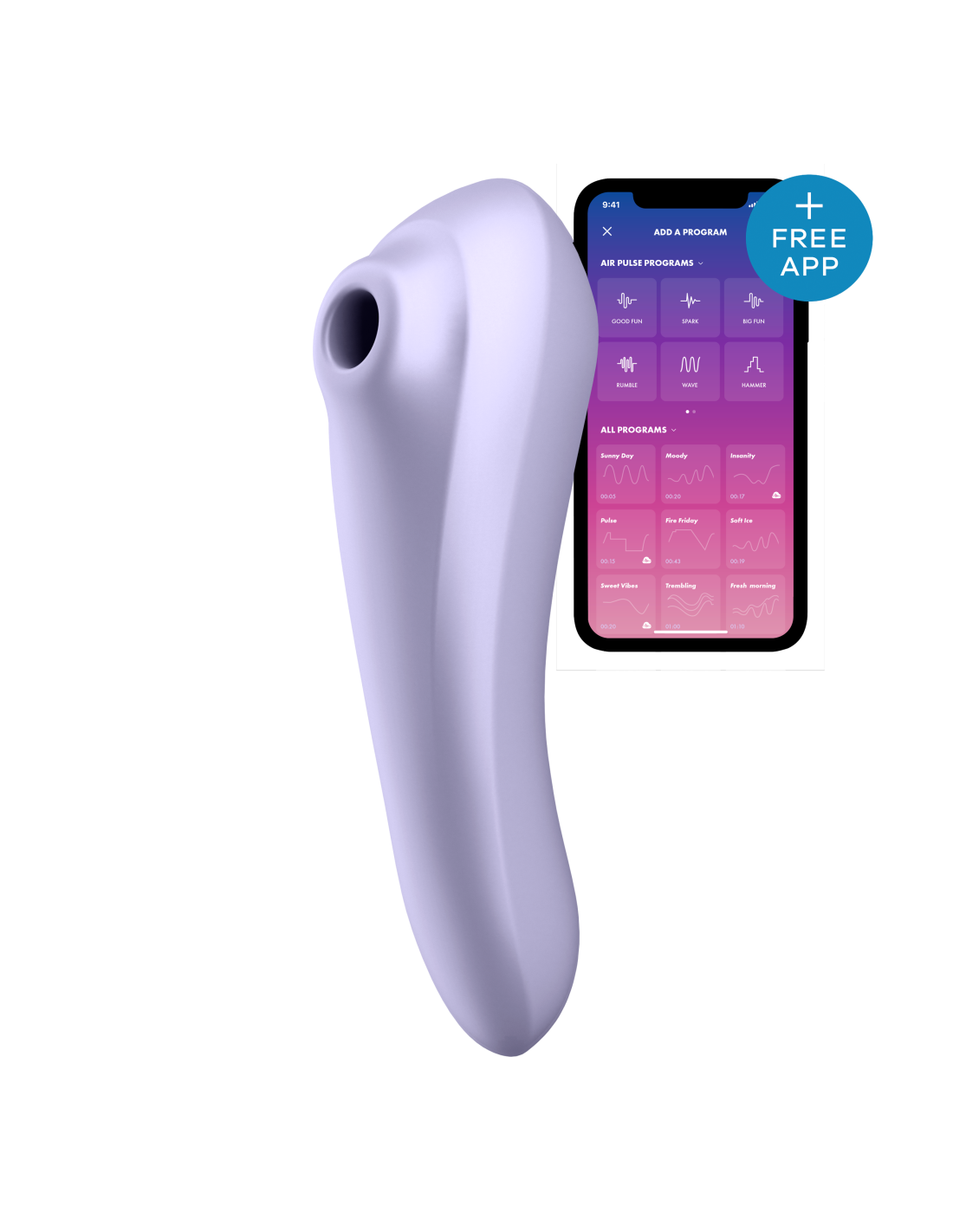 Duplica la diversión, duplica el placer: el nuevo Satisfyer Dual Pleasure es un estimulador del clítoris con Bluetooth y un vibrador interno del punto G. Diseñado para combinarse con la galardonada aplicación Satisfyer Connect, ¡Dual Pleasure acaba de llevar tu viaje sensual a un nuevo nivel!