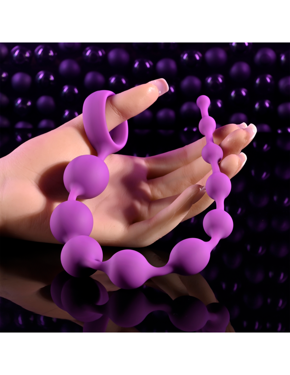 Elegantly long and flexible, this string of 10 firm silicone beads is crafted with a gradual increase in bead size leading up to a generous ring at the large end for safe retrieval.