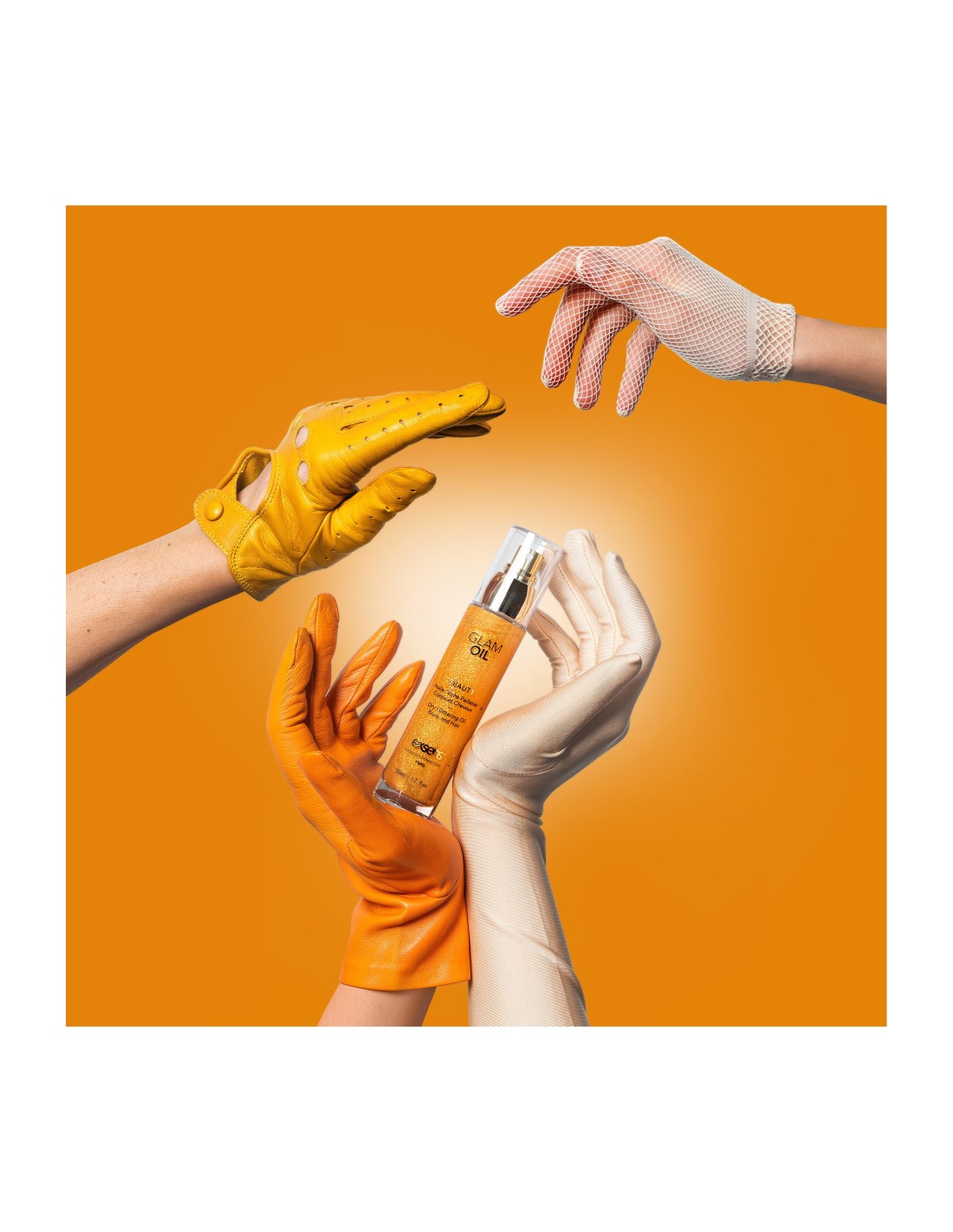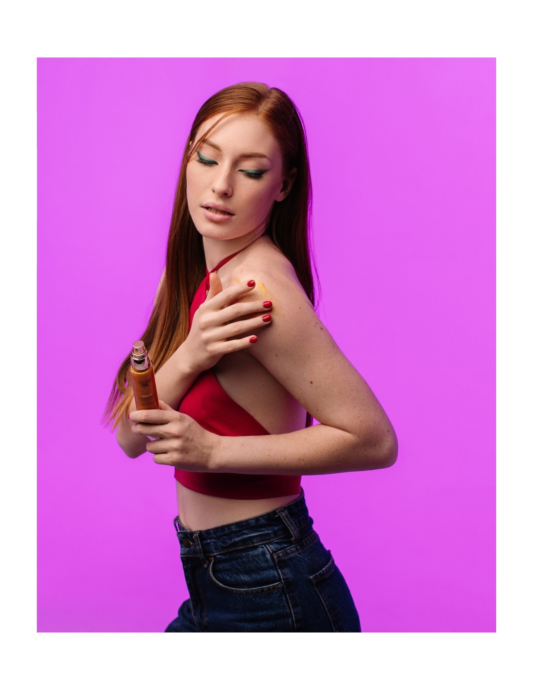 ¡Pase al centro de atención! Este aceite corporal seco con almendras dulces, por sus propiedades nutritivas y suavizantes, aporta un brillo resplandeciente a la piel y al cabello. ¡Ilumina y embellece tu piel con un suave brillo dorado que dura toda la noche!