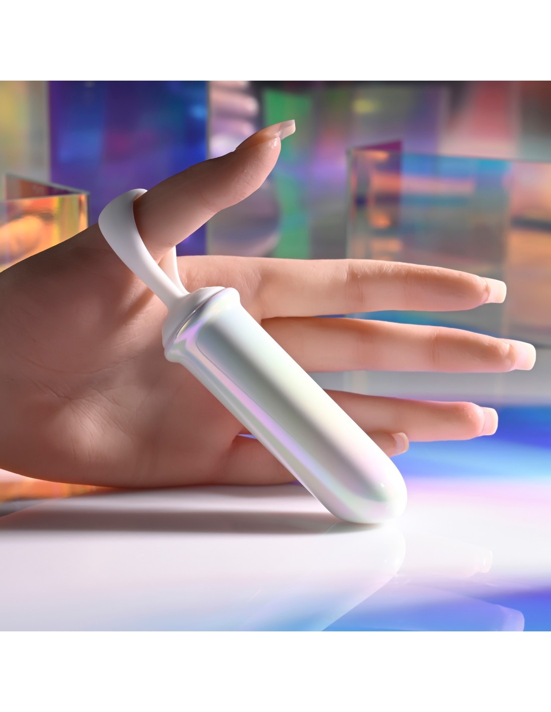 Make your Orgasmic Fantasies come true! This powerful multi-speed bullet shines with a lustrous iridescent glow as it caresses your body and delivers waves of pleasure wherever it touches. Amping up to 9 speeds and rhythms, it tapers to a gently chiseled lipstick tip that’s perfect for targeted vibrations where you want them most. A silicone finger loop at the base lets you navigate with ease, even in the bath or shower as it’s completely water submersible.
