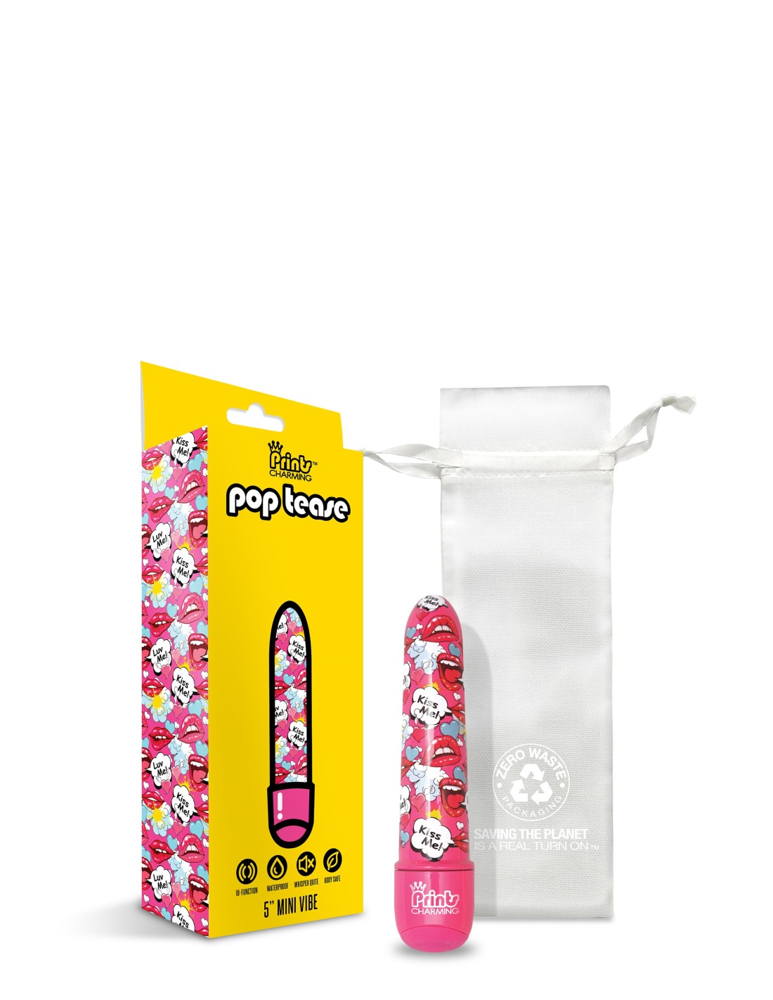 The Vibrador clásico The Prints Charming Pop Tease 5" es pequeño pero poderoso. El Prints Charming Pop Tease de diez funciones de Global Novelties es un accesorio imprescindible y, señoras, es perfecto para su bolso con 5 pulgadas (12,7 cm). También es resistente al agua, lo que lo convierte en una excelente adición. ¡A tu ducha, así que convierte tu escapada en el mejor juego acuático! El vibrador silencioso y de textura suave te permite deslizarlo por todas tus zonas erógenas mientras vibra poderosamente. Controla cómodamente la velocidad y el ritmo de las vibraciones con el botón táctil suave en la base. ¡Agrega uno a tu juego travieso y diviértete con esos pensamientos apasionantes que surgen!