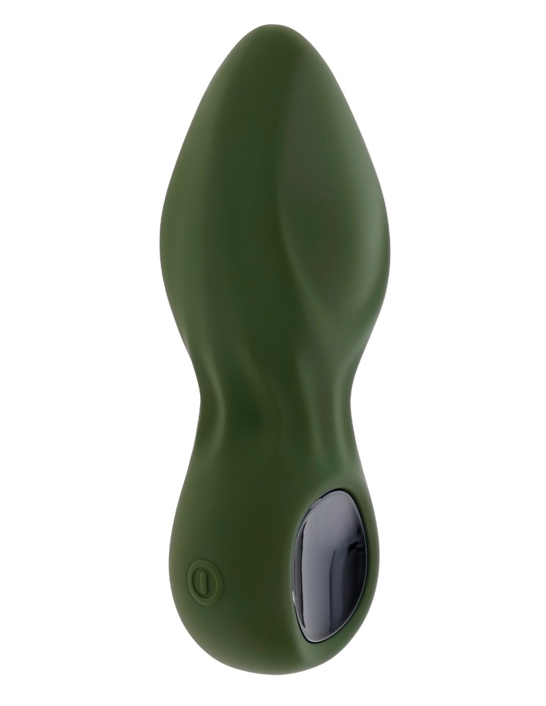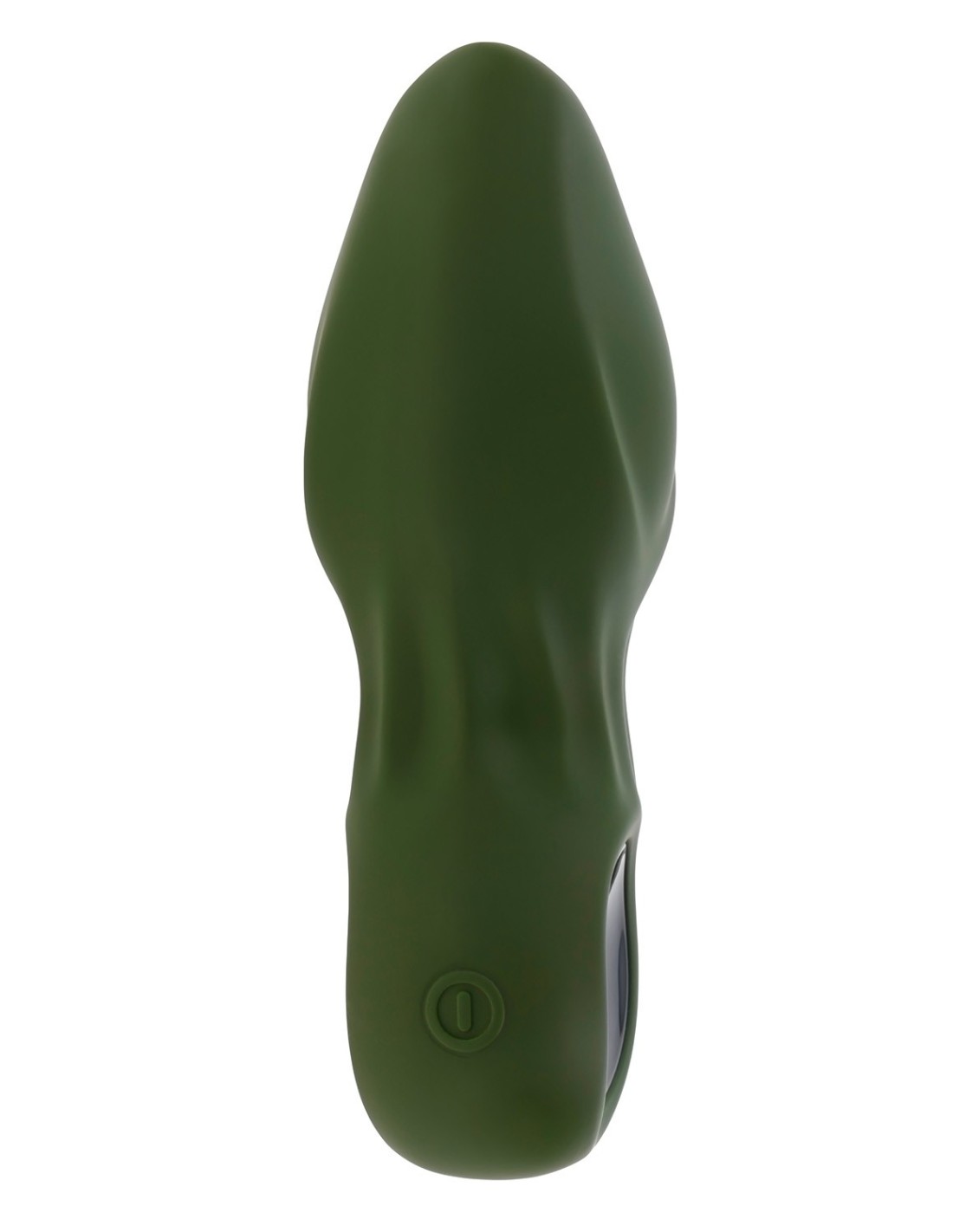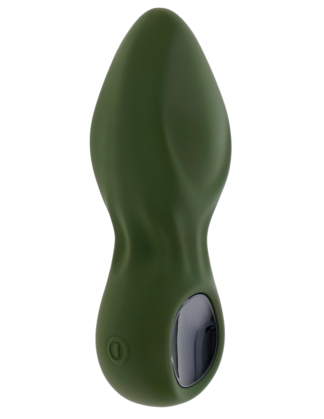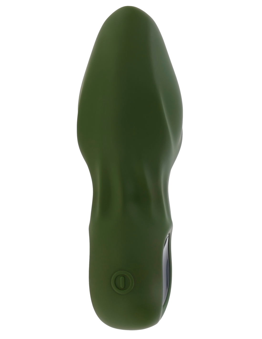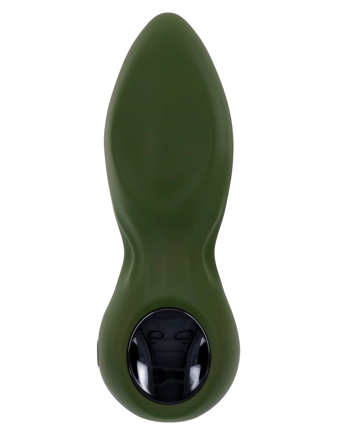 This rigid, remote-controlled toy is unique in design with a tapered tip and distinct front and back shapes. The front plane features a gently raised, smooth oval while the back is defined by a subtle curve. Grip well with the textured pinch above the base that's designed for easy navigation and safety.