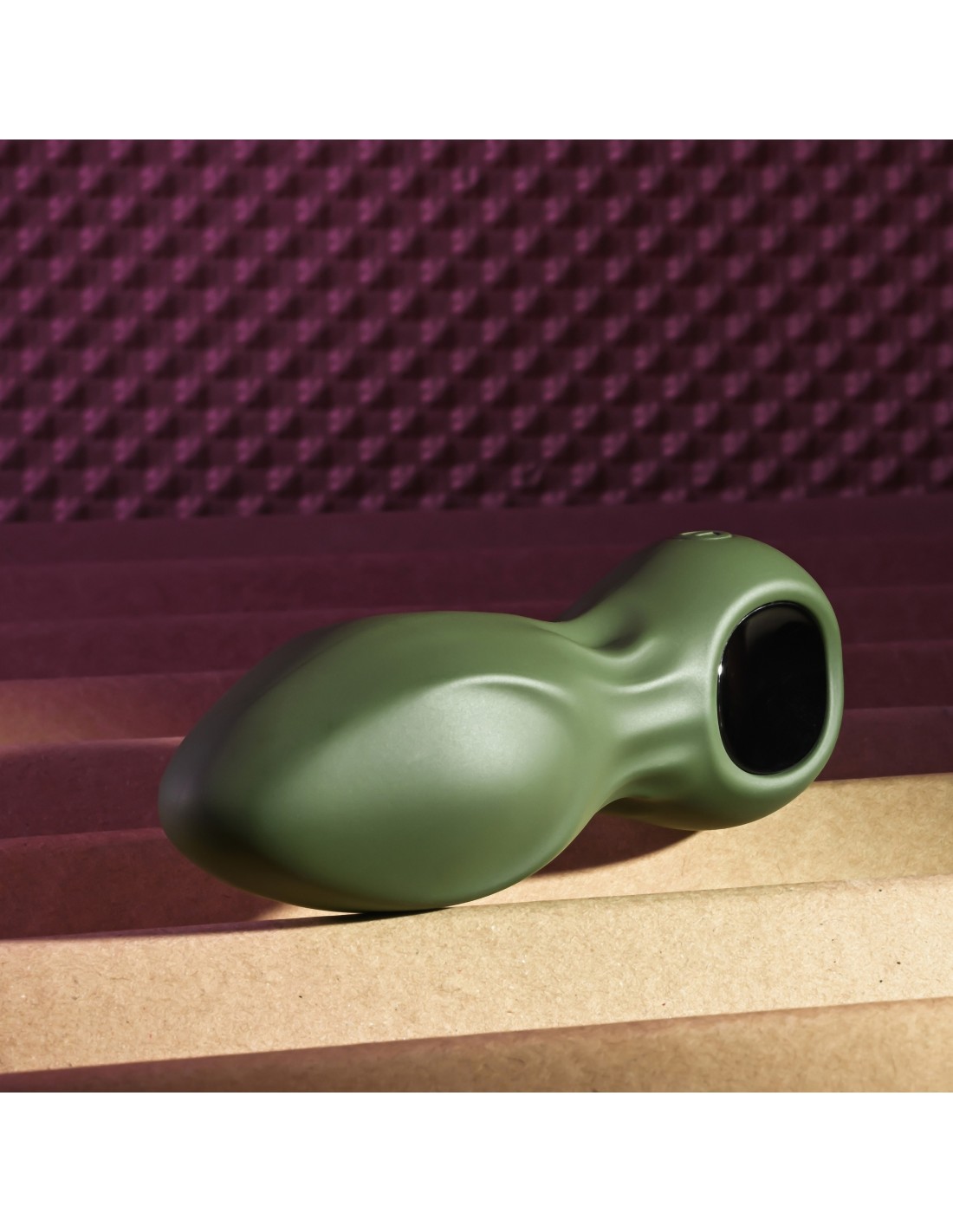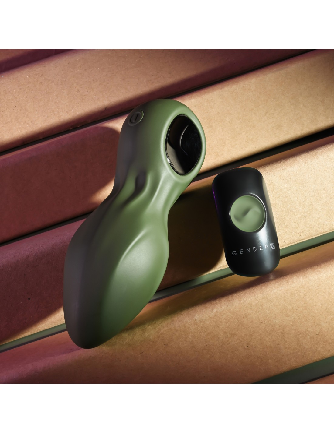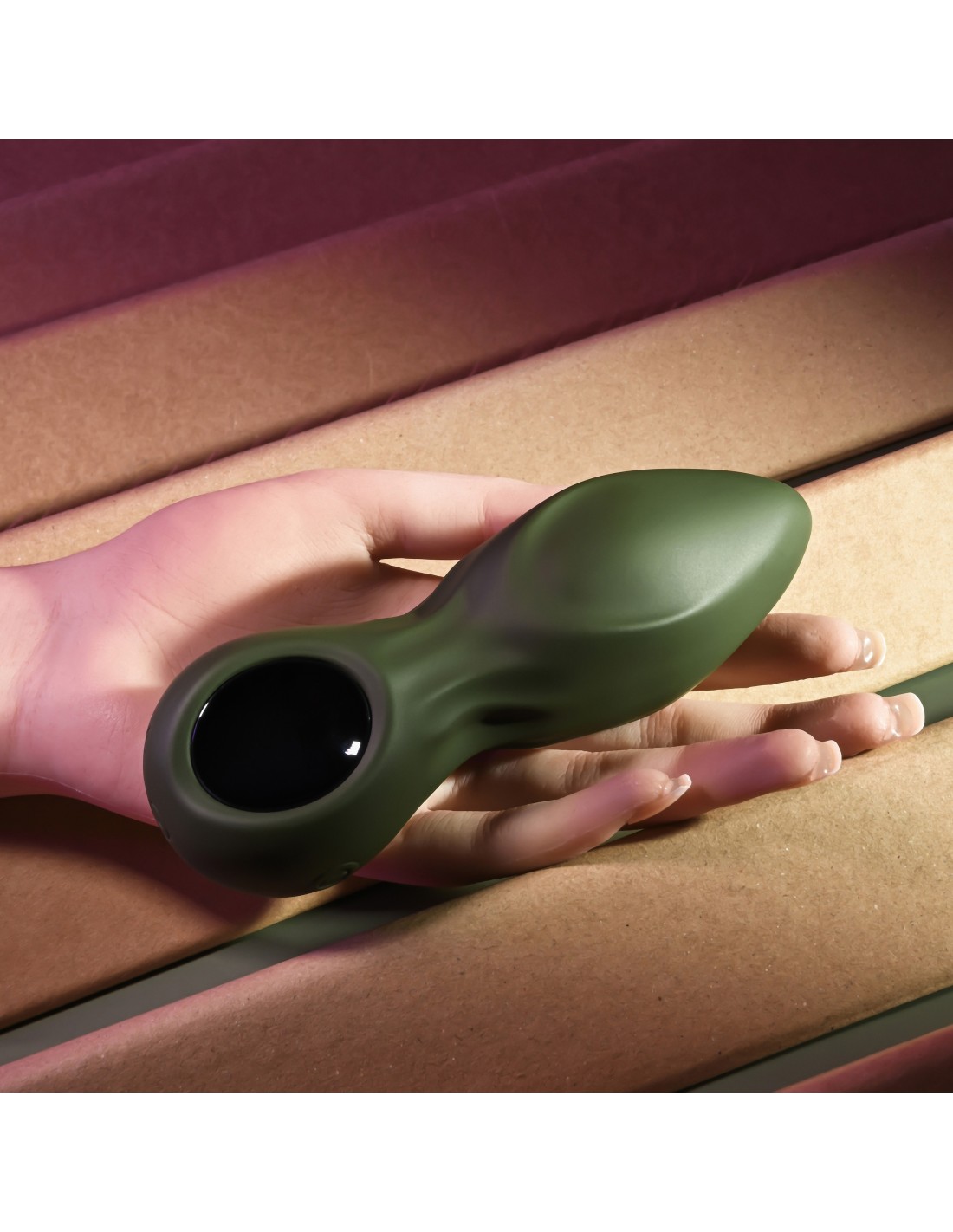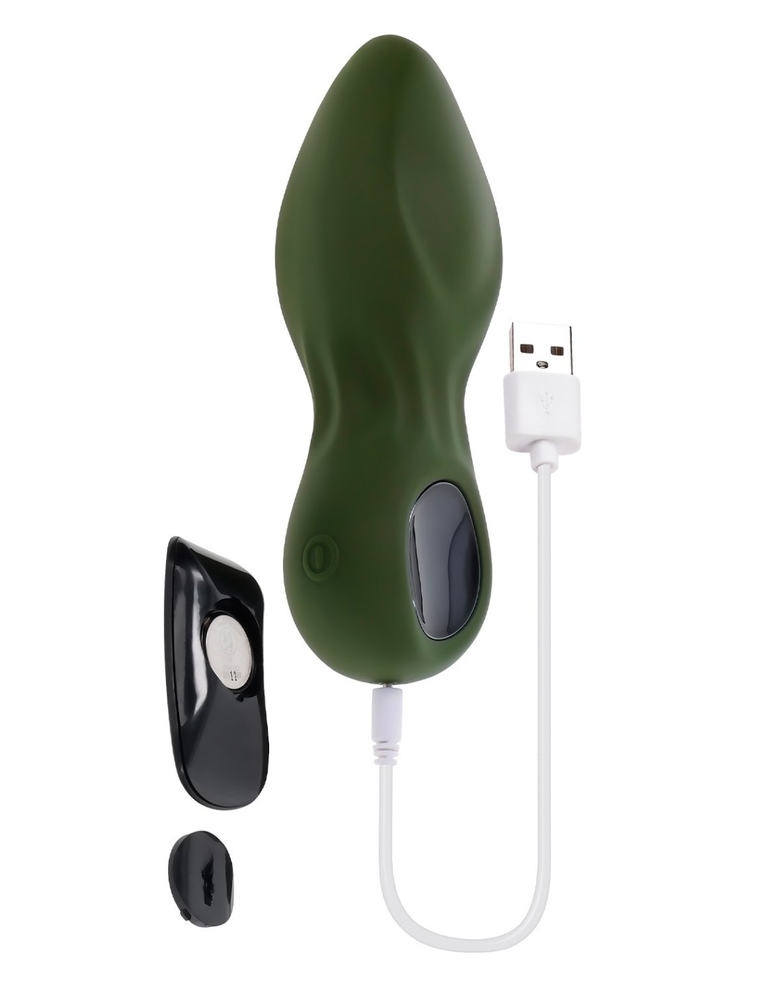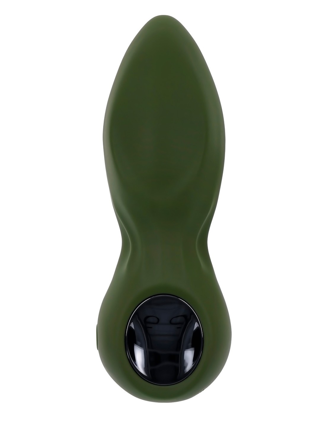 This rigid, remote-controlled toy is unique in design with a tapered tip and distinct front and back shapes. The front plane features a gently raised, smooth oval while the back is defined by a subtle curve. Grip well with the textured pinch above the base that's designed for easy navigation and safety.