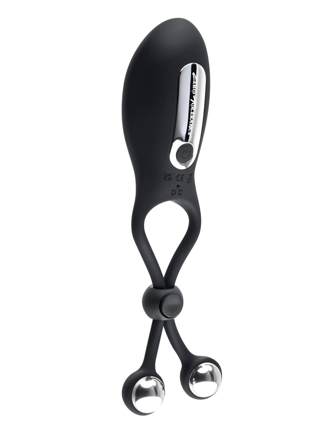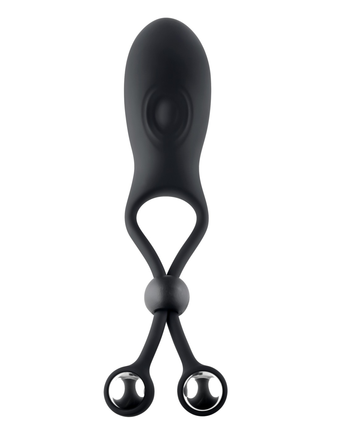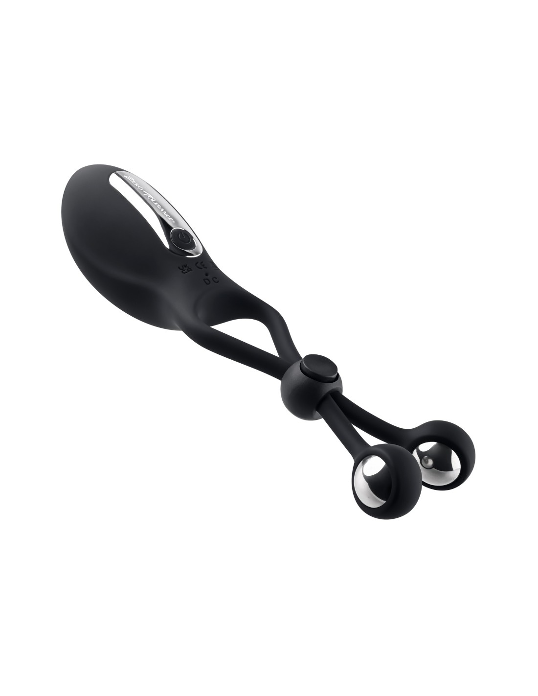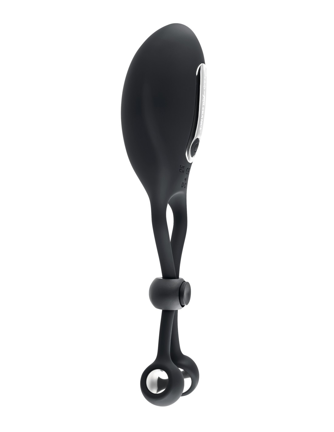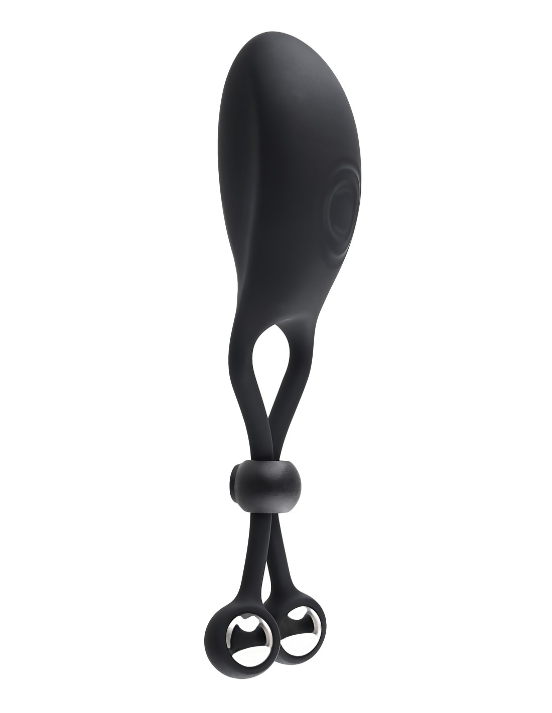 Presentamos un diseño de anillo único que es súper cómodo y tremendamente excitante. Las correas de silicona ajustables se atan a tu alrededor como un cordón y terminan con dos bolas de acero inoxidable que cuelgan y masajean mientras se mueven. La pieza central gruesa cuenta con un potente motor de golpeteo que estimula en 10 velocidades gloriosas dondequiera que la coloques, y el control de 1 botón está ubicado en una elegante placa con acabado cromado. Disfruta de tu placer duradero bajo el agua ya que es completamente sumergible, fácil de limpiar y se recarga vía USB.