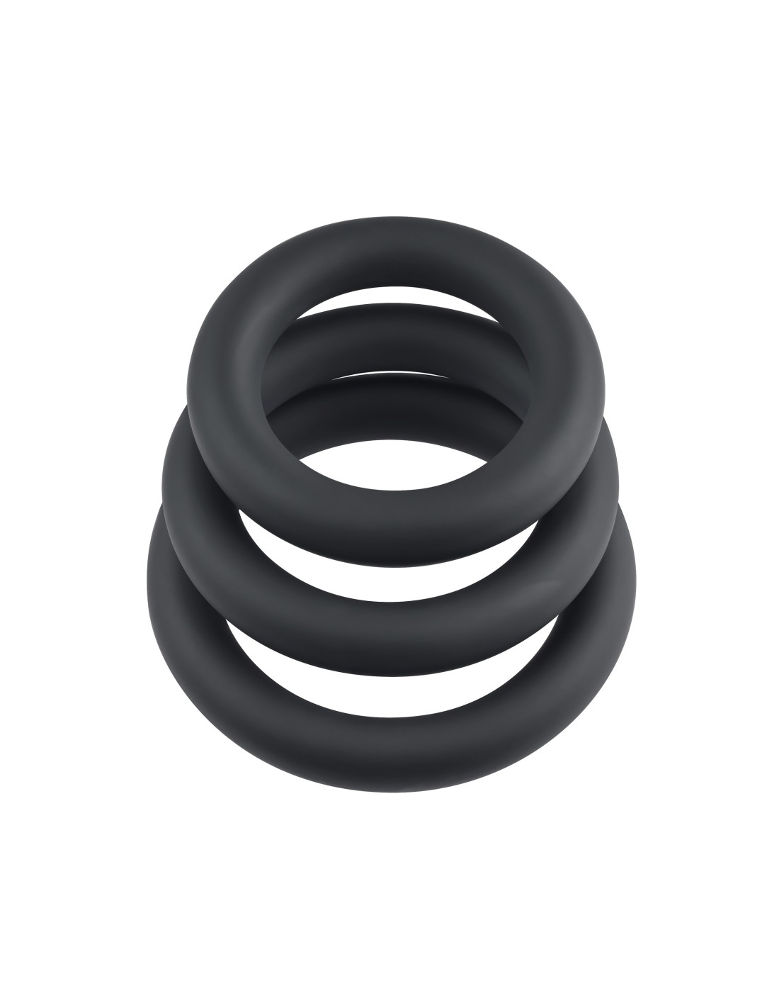 Prolongar y ampliar Fortalezca su erección con anillos para el pene de silicona suaves y elásticos que restringen suavemente el flujo sanguíneo para una experiencia sensual única. Cada tamaño ofrece una intensidad diferente.