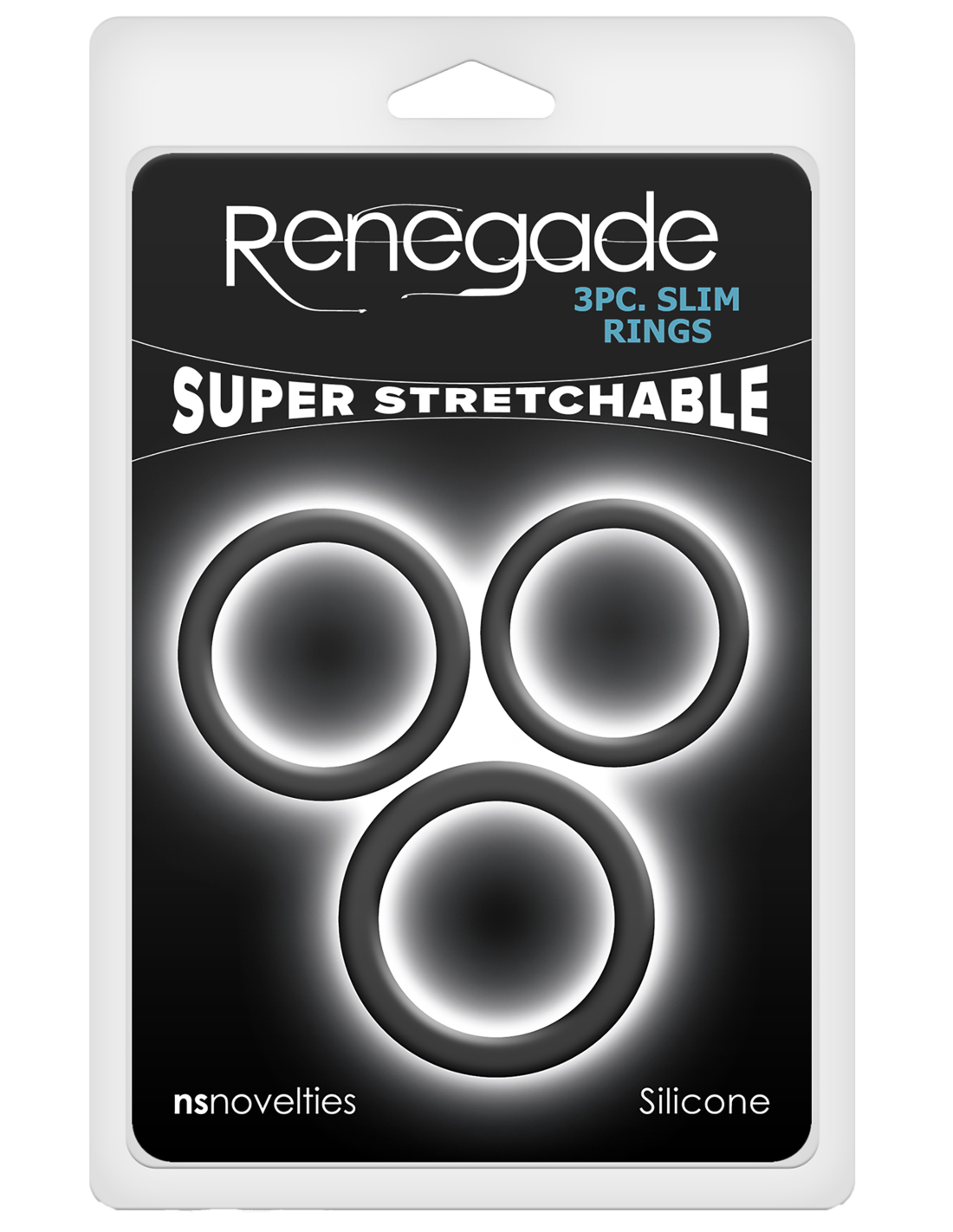 Renegade’s 3pc Slim Rings are super stretchy, silicone rings available in three sizes to provide endless combinations of restrictive enjoyment. Suitable with all lubricants.