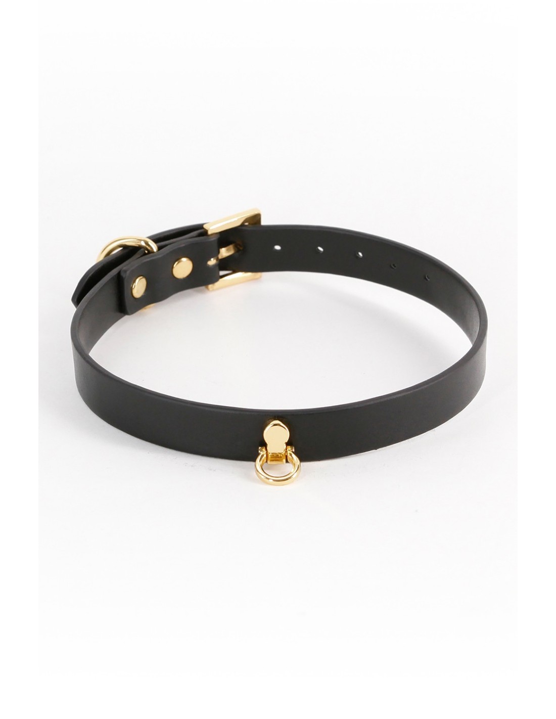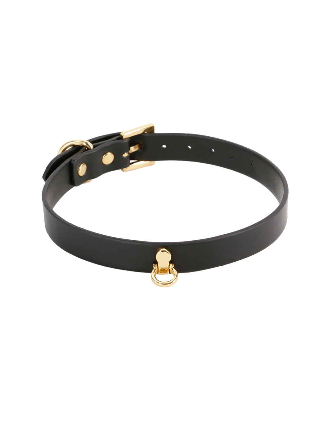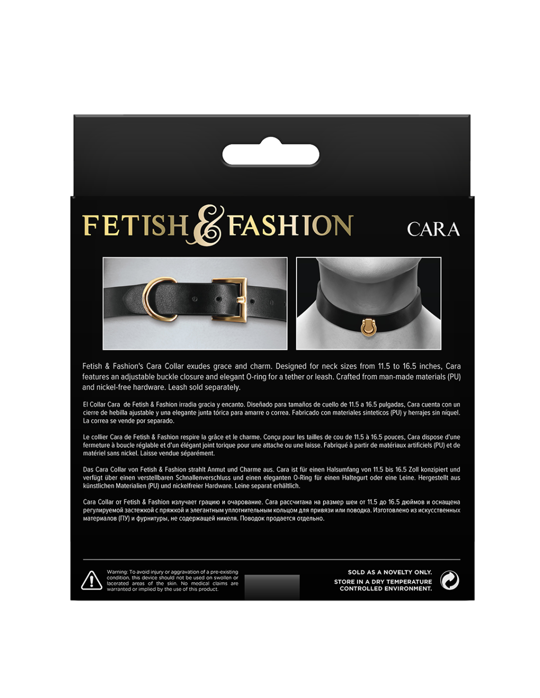 Fetish & Fashion’s Cara Collar exudes grace and charm. Designed for neck sizes from 11.5 to 16.5 inches, Cara features an adjustable buckle closure and elegant O-ring for a tether or leash. Crafted from man-made materials (PU) and nickel-free hardware. Leash sold separately.