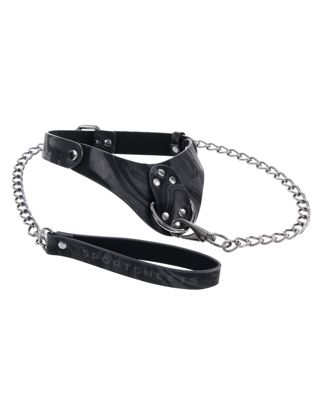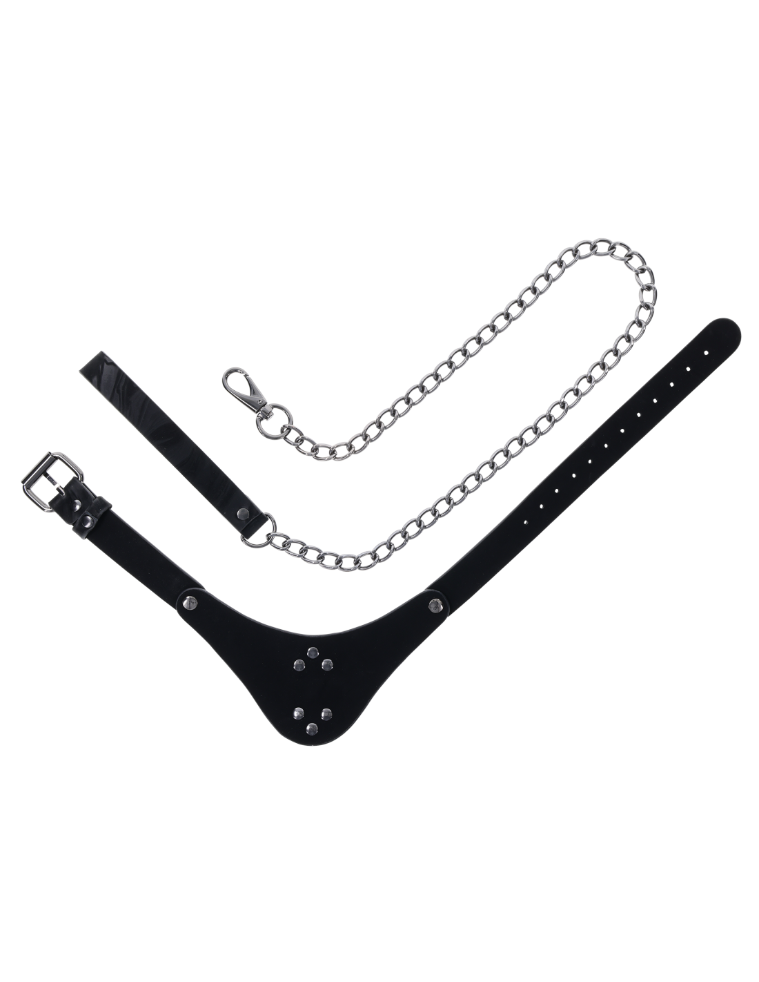 - 28inch / 71cm hematite removable chain leash with faux leather handle