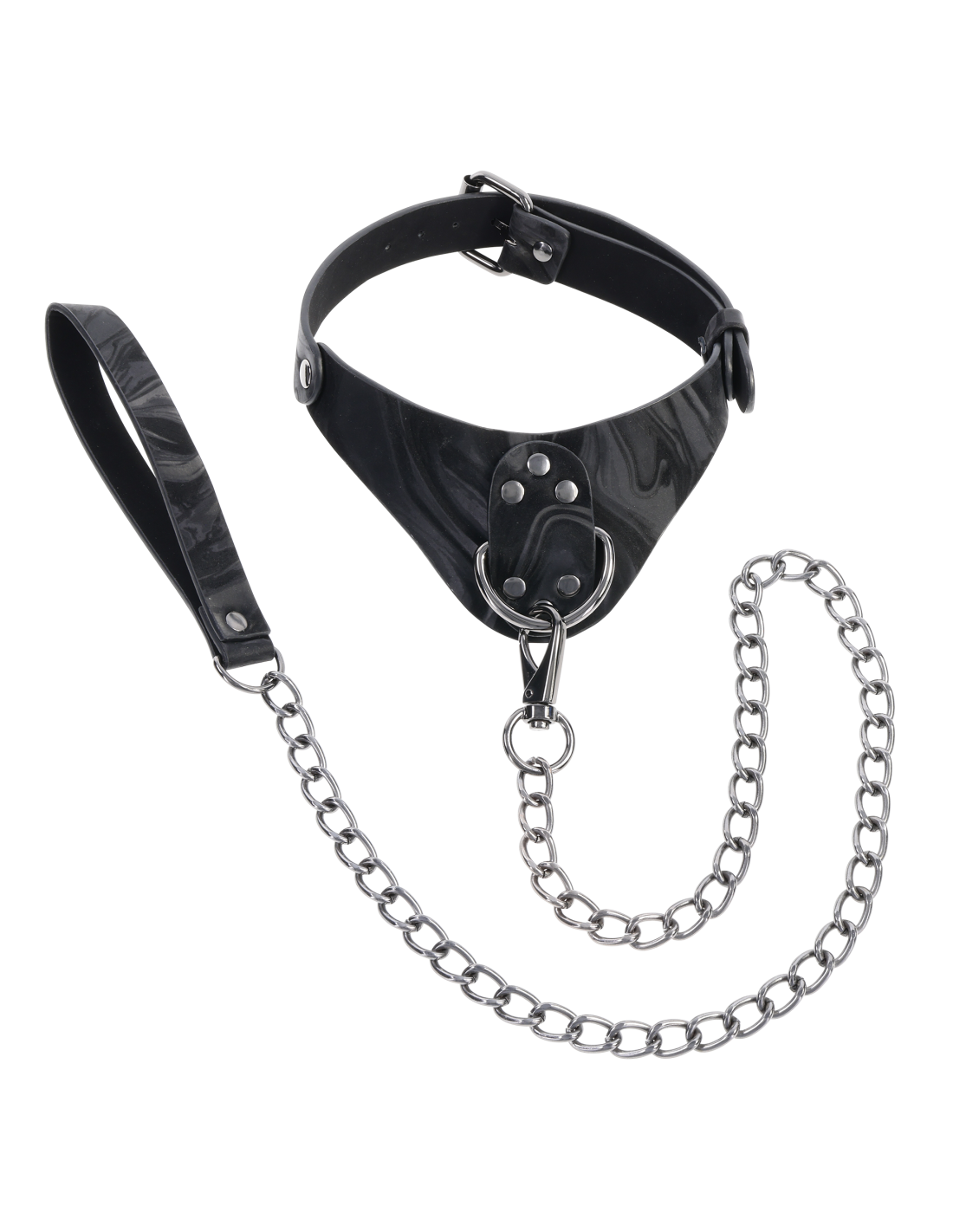 Step into the world of refined restraint with the Velvet Noir Collar & Leash. Crafted to blend elegance with functionality, this collar surrounds the neck in a luxurious, marbled material that’s as captivating as it is comfortable. The dark, intricate pattern adds an aura of sophistication, transforming a classic restraint into a piece of art. Whether you’re exploring new levels of trust or simply enhancing your intimate collection, the Velvet Noir Collar delivers an experience that commands attention.