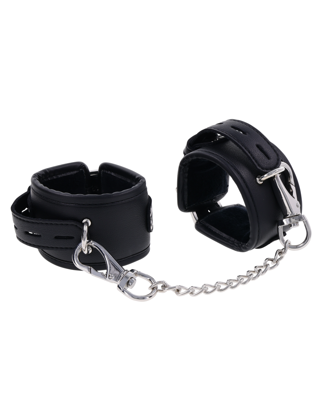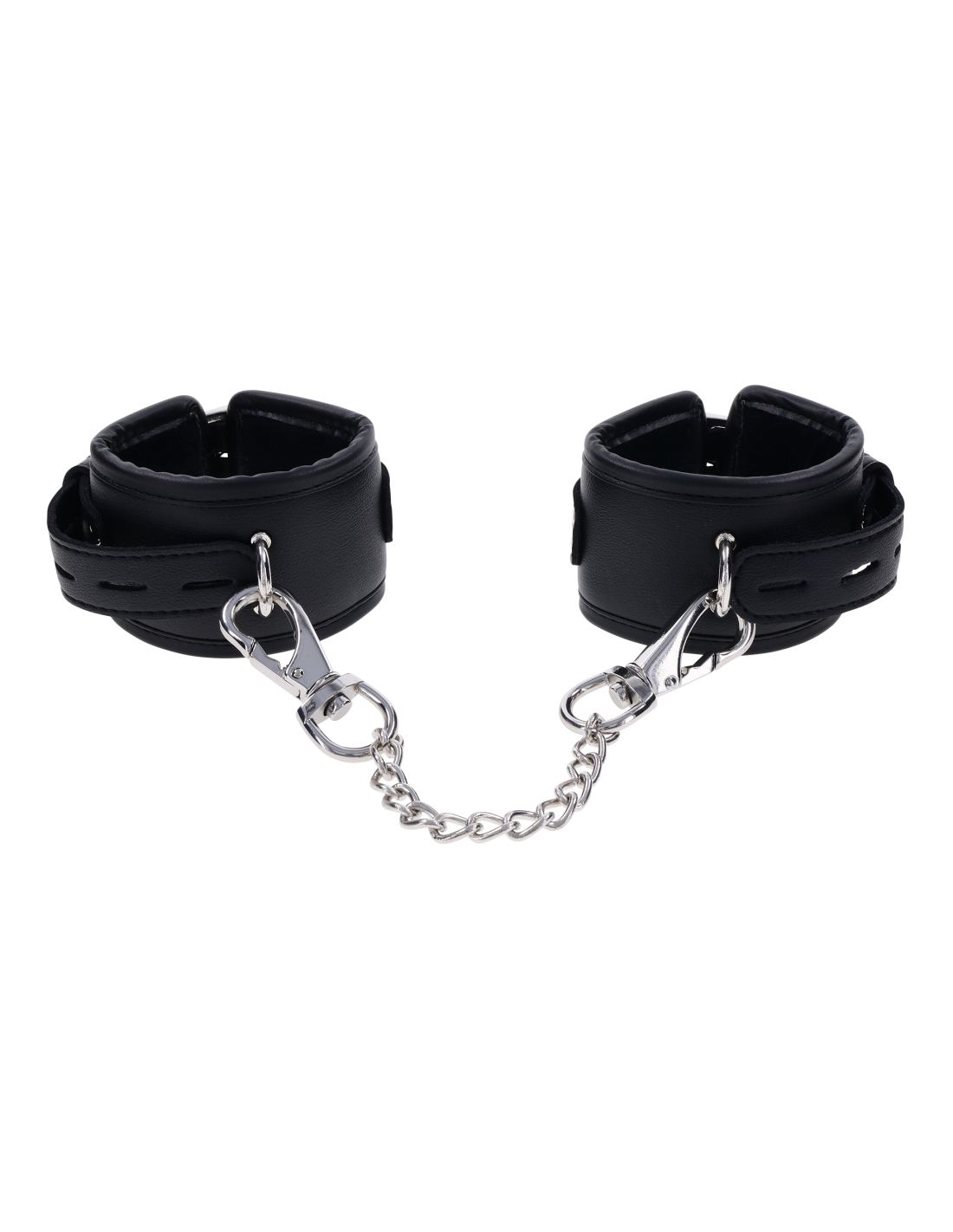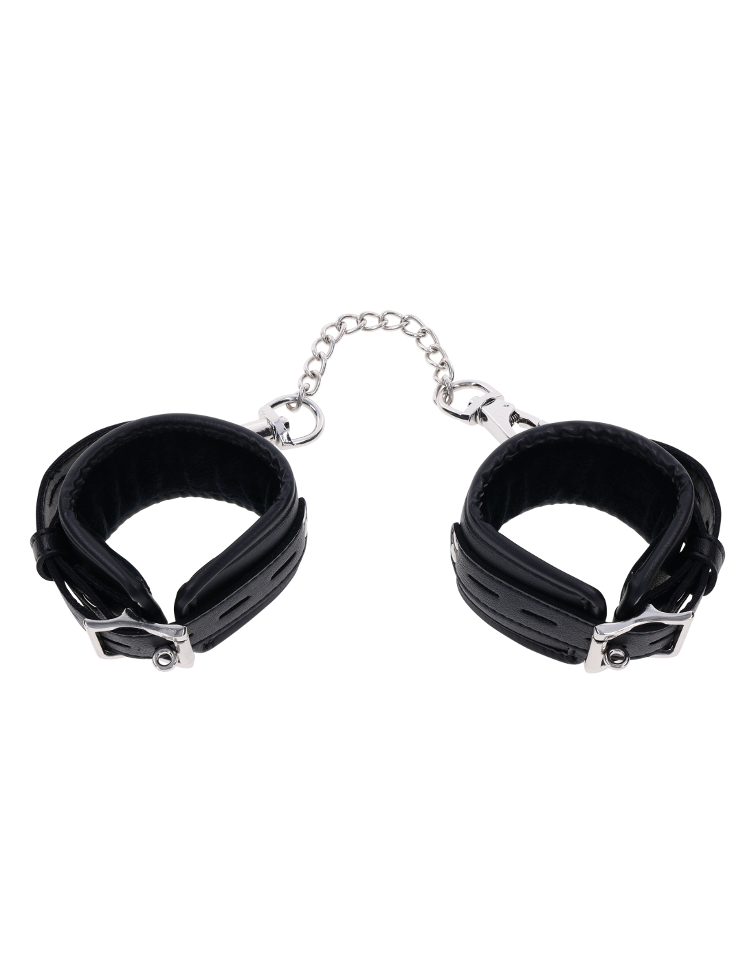 Take control with the Edge® Handcuffs, the perfect complement to your power play. These matching black cuffs are padded for comfort and durability, designed for extended wear and secure restraint. Featuring sleek silver metal hardware and reinforced stitching, they’re built to withstand even the most intense sessions. The adjustable buckle closure ensures a customizable fit, while a sturdy rings allow for versatile attachment to other restraints or bondage gear. Whether you're a seasoned pro or a curious beginner, the Edge® Handcuffs offer a perfect balance of comfort and control.