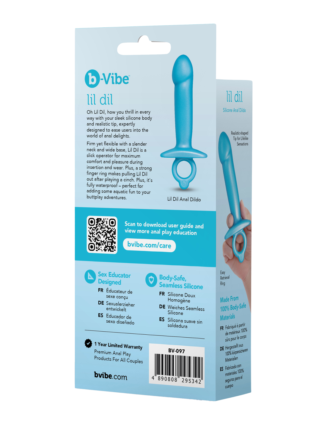 Firm yet flexible with a slender neck and wide base, the b-Vibe Lil Dil is a slick operator for maximum comfort and pleasure during insertion and wear. Plus, a strong finger ring makes pulling Lil Dil out after playing a cinch. Like all b-Vibe Butties, the Lil Dil is fully waterproof making it the perfect companion for adding some aquatic fun to your buttplay adventures.