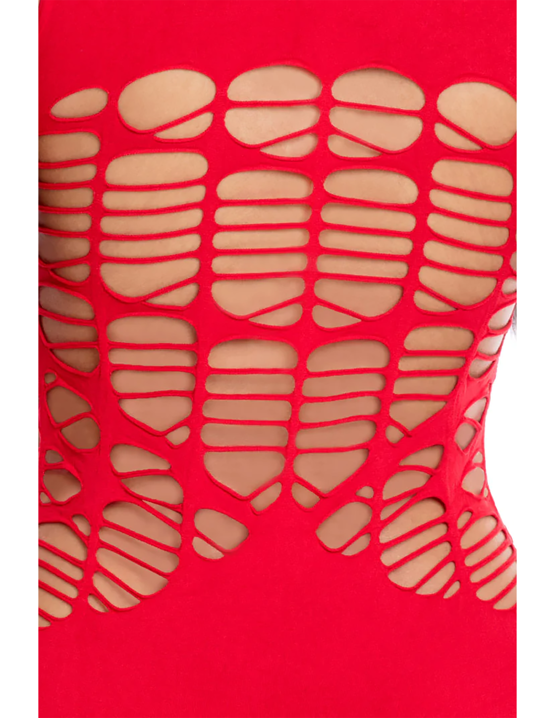 Mini vestido con partes abiertas, formadas por aberturas más pequeñas y más grandes. El diseño muestra tus activos físicos y resalta tus curvas.