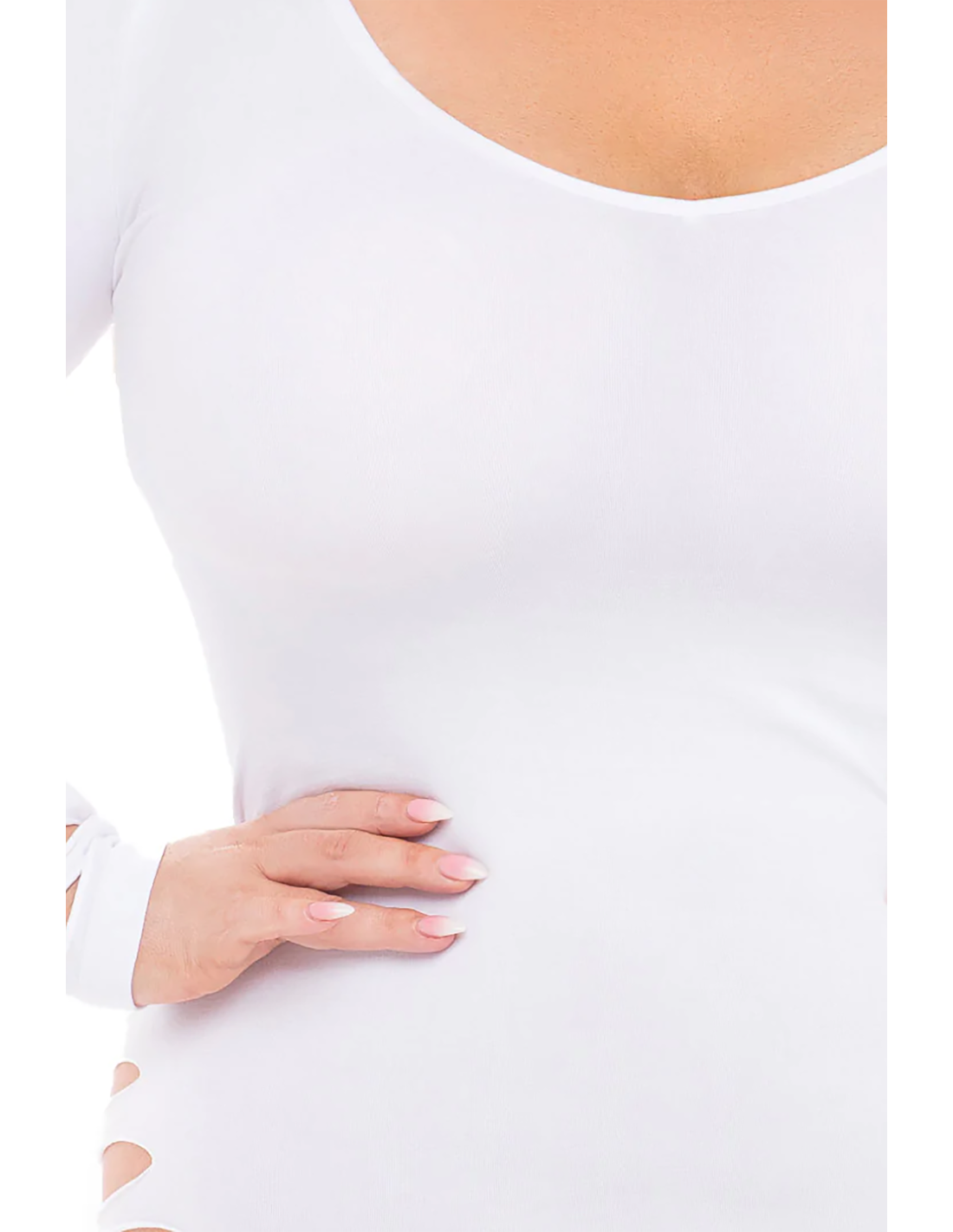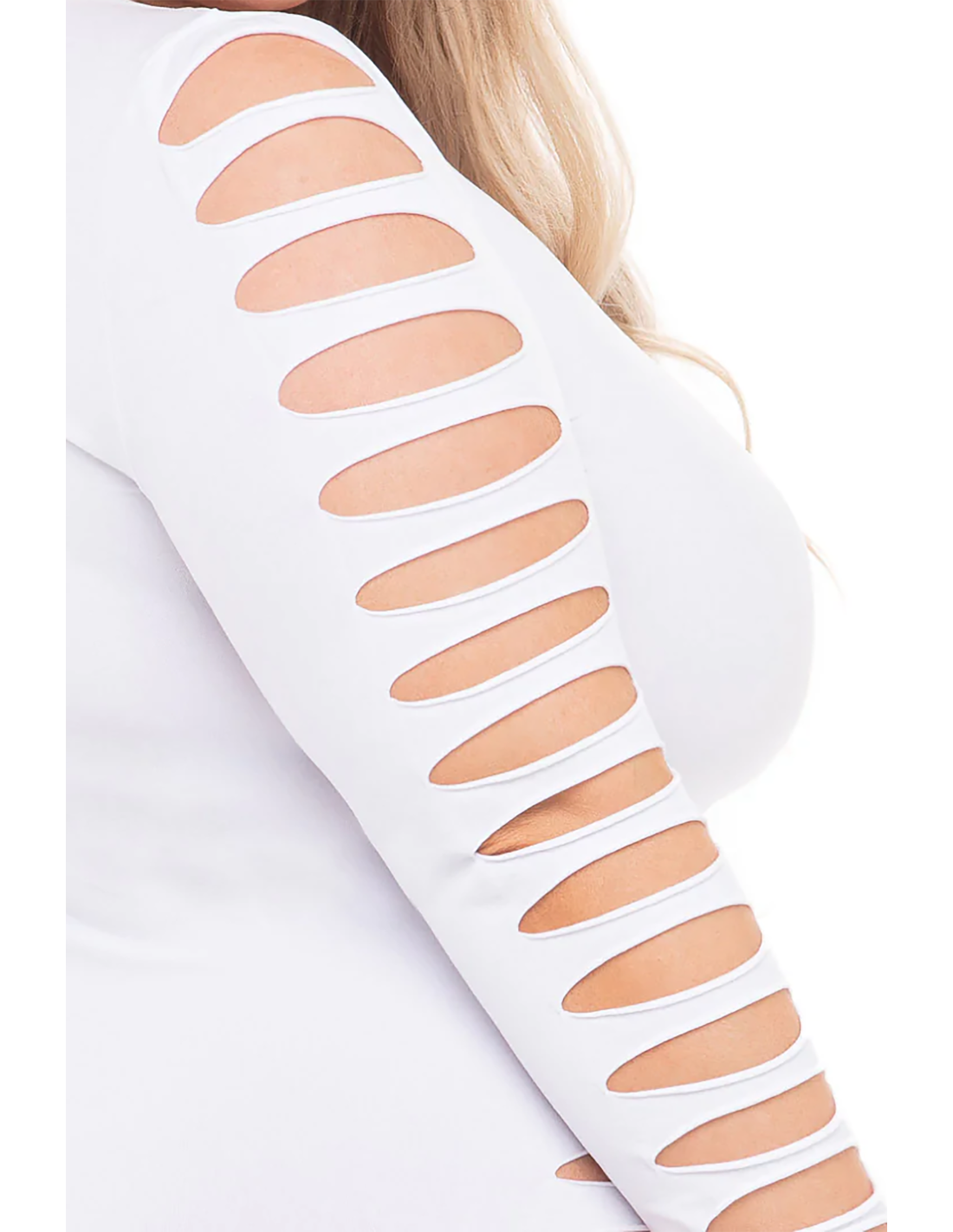 Vestido mini de manga larga y aberturas en espalda, brazos y cadera. ¡Sé una nena atrevida y muestra algo de piel!