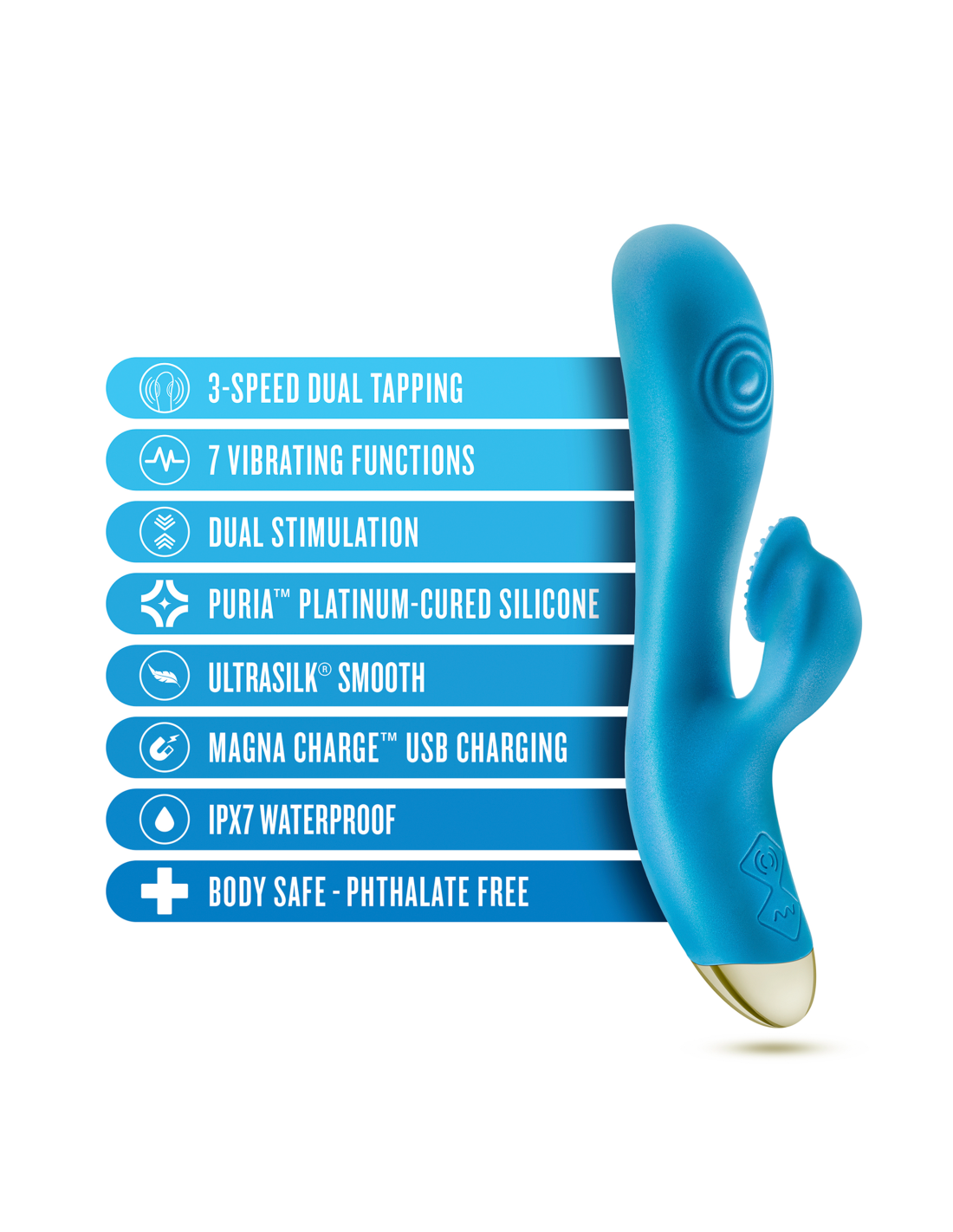Uno de los La característica clave de este juguete es la función de doble pulsación en su eje que pulsa sensual y suavemente dentro de ti. Elige entre 3 velocidades para fluir contigo mientras llegas al orgasmo. Su clítoris disfrutará de los suaves cosquilleos estimulantes que brindan vibraciones satisfactorias desde el vástago suave y flexible del estimulador de clítoris. Hay 7 funciones de vibración para elegir. 3 velocidades y 4 ritmos de vibración únicos.