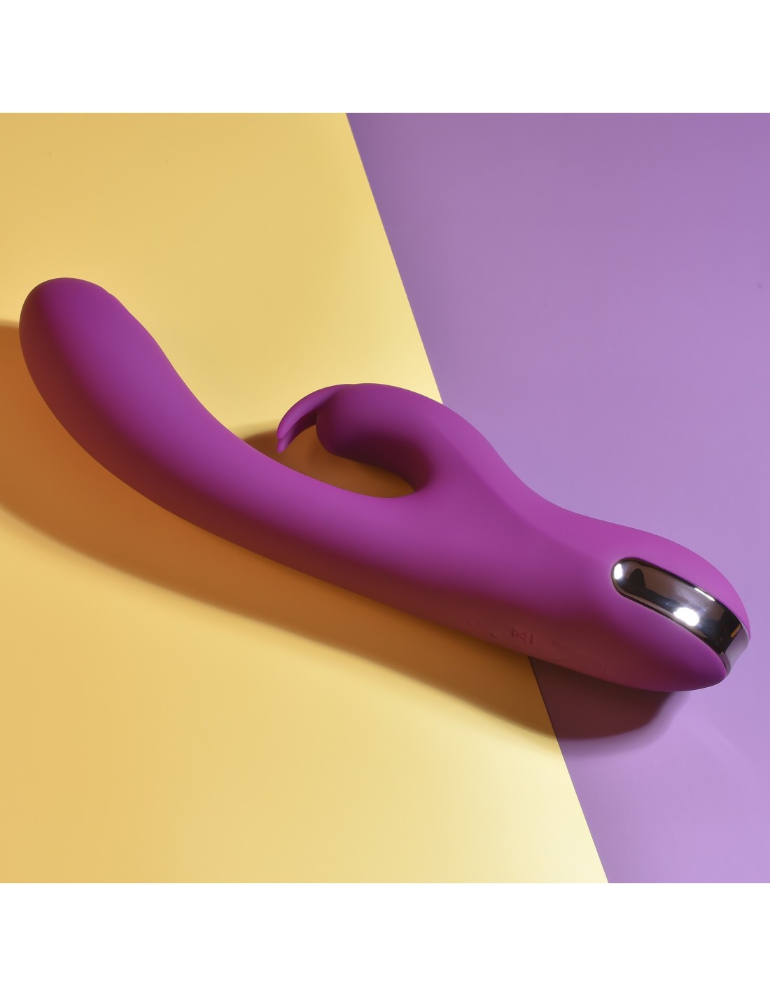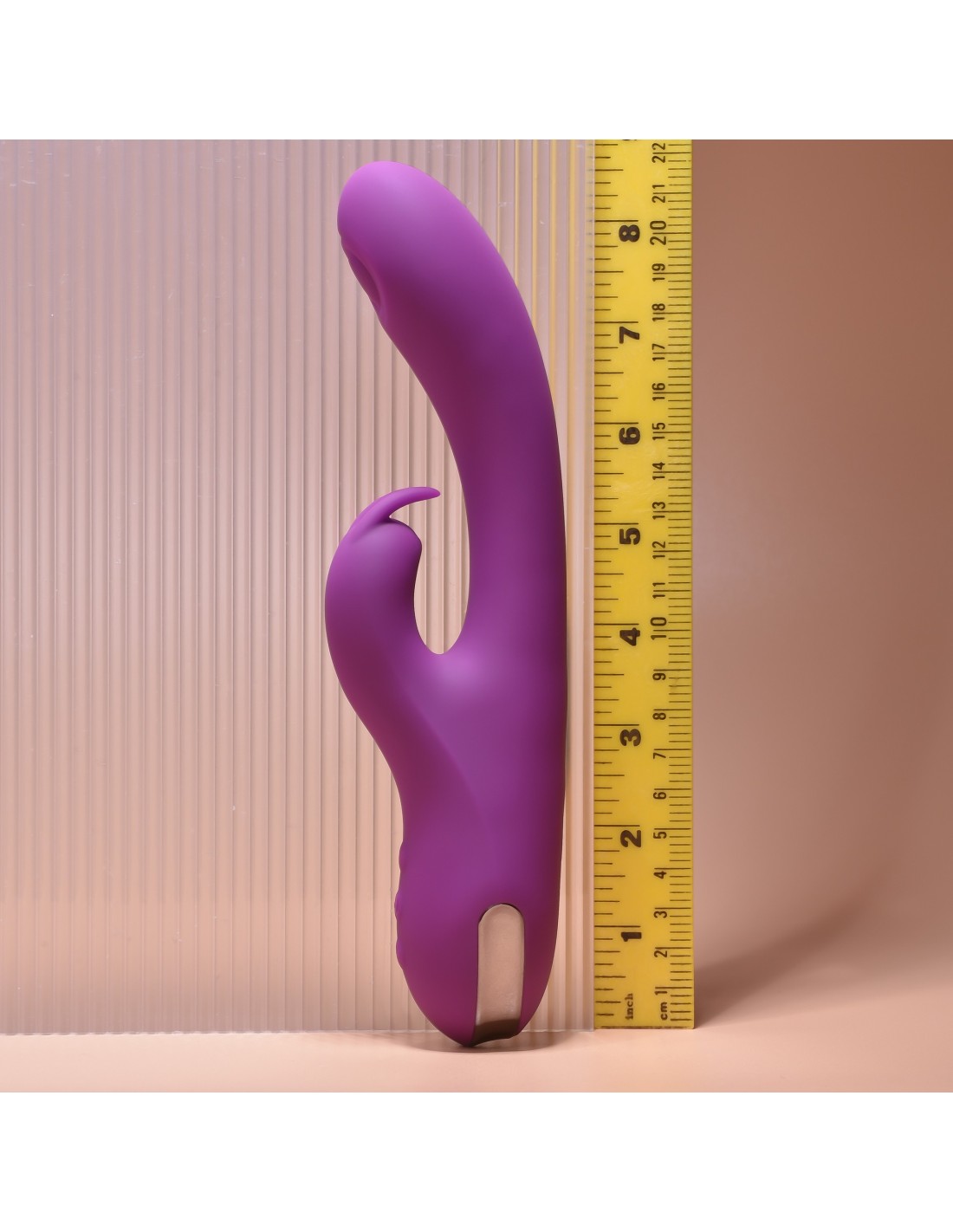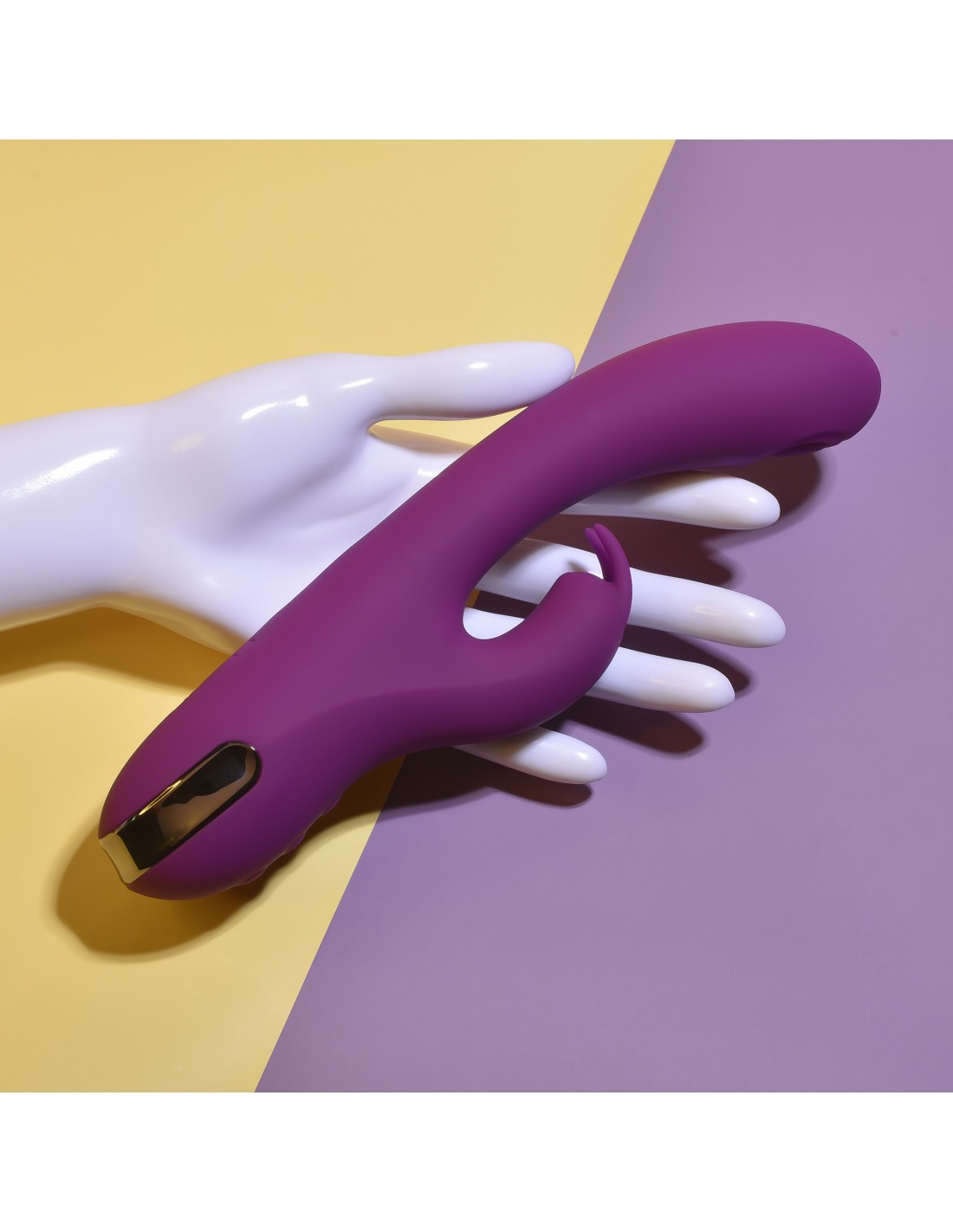Un pozo de placer te espera con Thumper, un vibrador Rabbit hecho de silicona suave como el terciopelo. El eje vibratorio se curva perfectamente y termina en un cabezal que golpea su punto G para una estimulación concentrada. Experimenta lo mejor de ambos mundos con las 10 potentes velocidades de vibración y ritmos del estimulador externo de conejos. ¡Libertad para jugar!