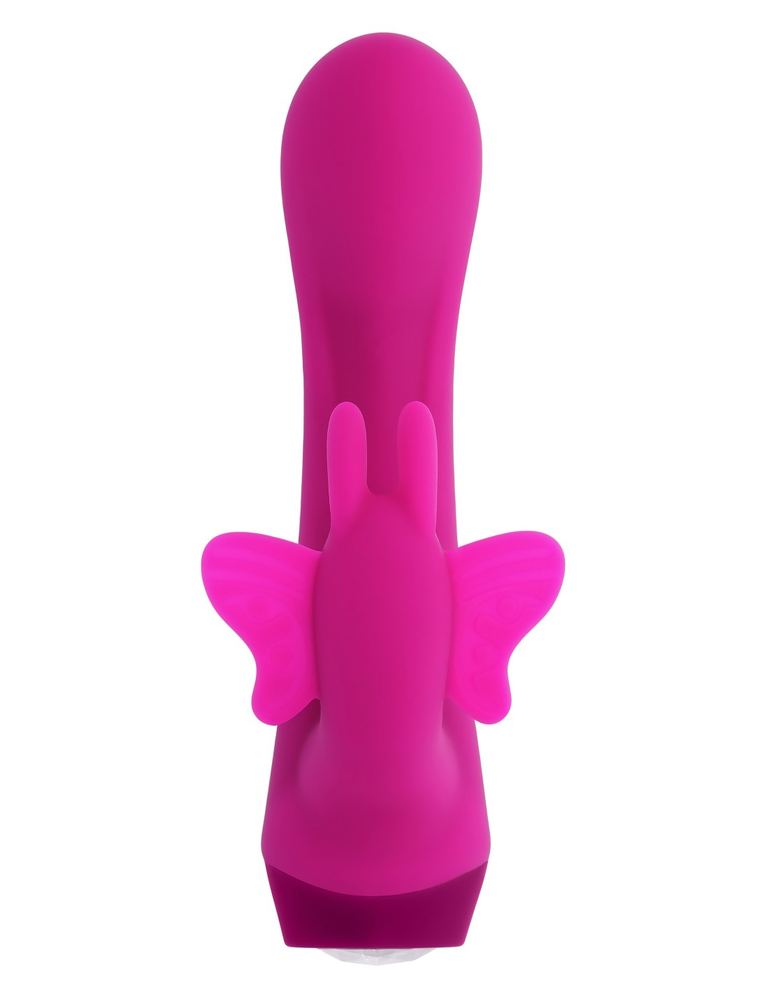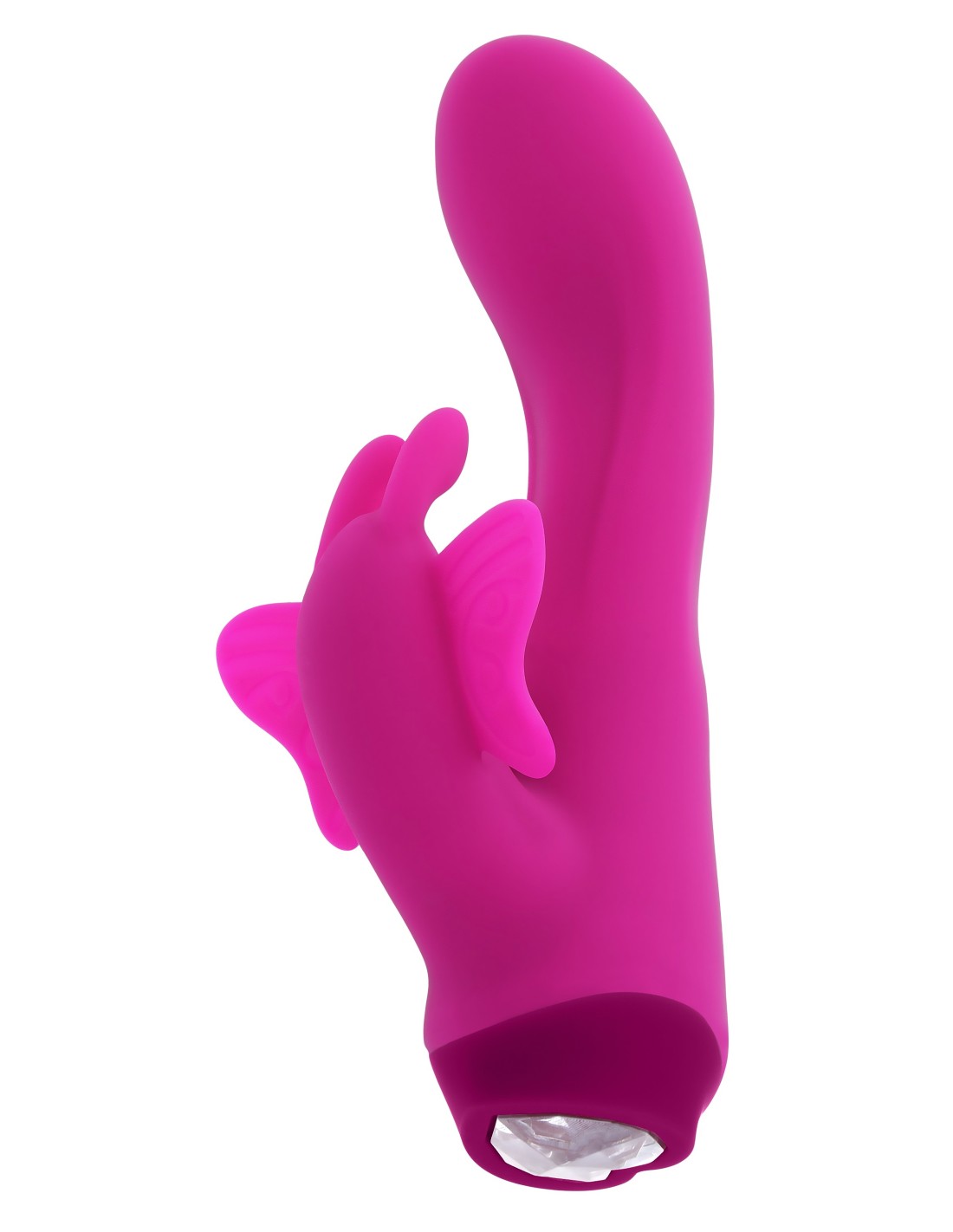 Enjoy deep vibrations inside and out with this powerful yet petite vibe that features a curved main shaft and a robust butterfly stimulator controlled simultaneously by a heart-shaped gem button.