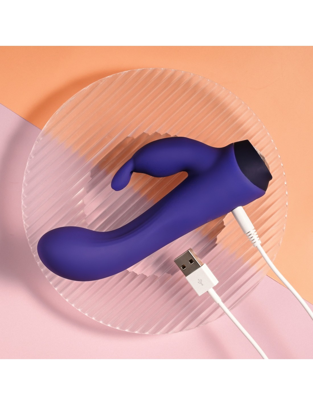 This petite rabbit vibrator features 2 powerful motors that work simultaneously inside its flexible, curved main shaft and tireless rabbit stimulator - with a heart-shaped gem button at the base.