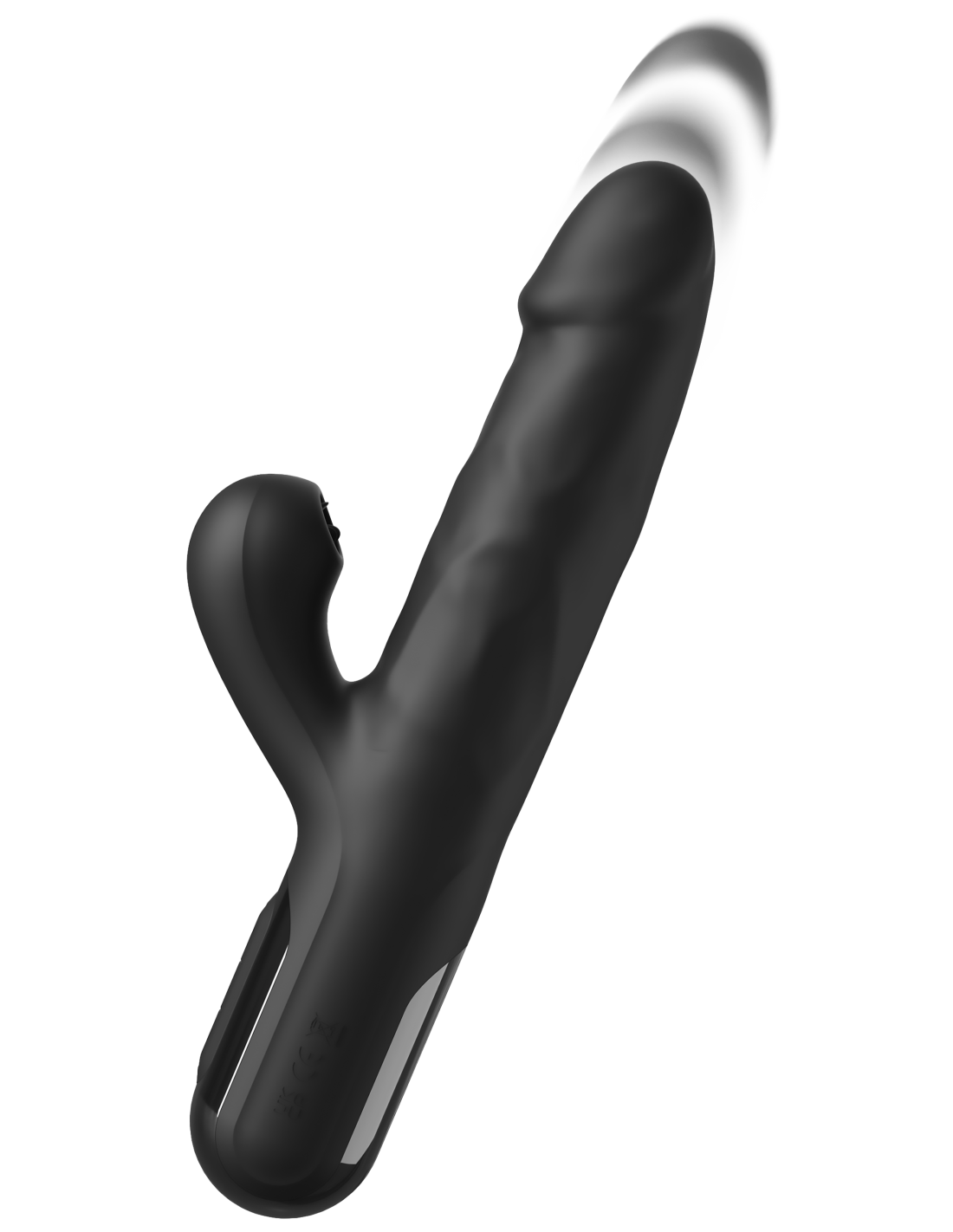 In addition to this, it features a powerful flickering clit stimulator—a specially designed rabbit ear with three tiny flickering tongues that surround and stimulate your clitoris with sheet-clutching ecstasy! There are 10 modes of intense tongue flickering that will curl your toes and give you the ability to find that sweet spot! And if that’s not enough, 10 vibration modes at the tip of the thruster are sure to take you to the finish line!