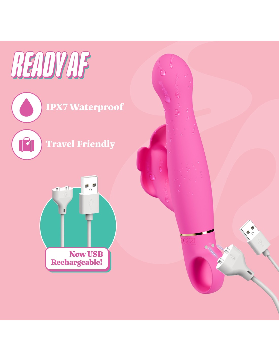 Beautiful and powerful, meet the Aria® Naughty AF. Featuring Blush’s signature RumboTech™ technology, this gorgeous dual-stimulator is a total game changer. With 10 deep, indulgent vibration modes (5 speeds & 5 patterns), you’ll feel the difference as two powerful motors work together to deliver blended G-spot and clitoral pleasure. The gently curved internal shaft knows just where to go, while the flexible external arm moves with your body, keeping consistent and smooth contact. The ergonomic loop handle gives you comfortable control from any angle, whether you're exploring solo or inviting someone else to join in. Crafted from Puria® platinum-cured silicone, wrapped in UltraSilk® Naughty AF is 100% body-safe, smooth and feels amazing against the skin. It’s IPX7 waterproof for bath or shower play, and with magnetic USB charging, it’s always ready when you are. Naughty AF lives up to the name, in all the best ways. Embrace the power of Aria!
