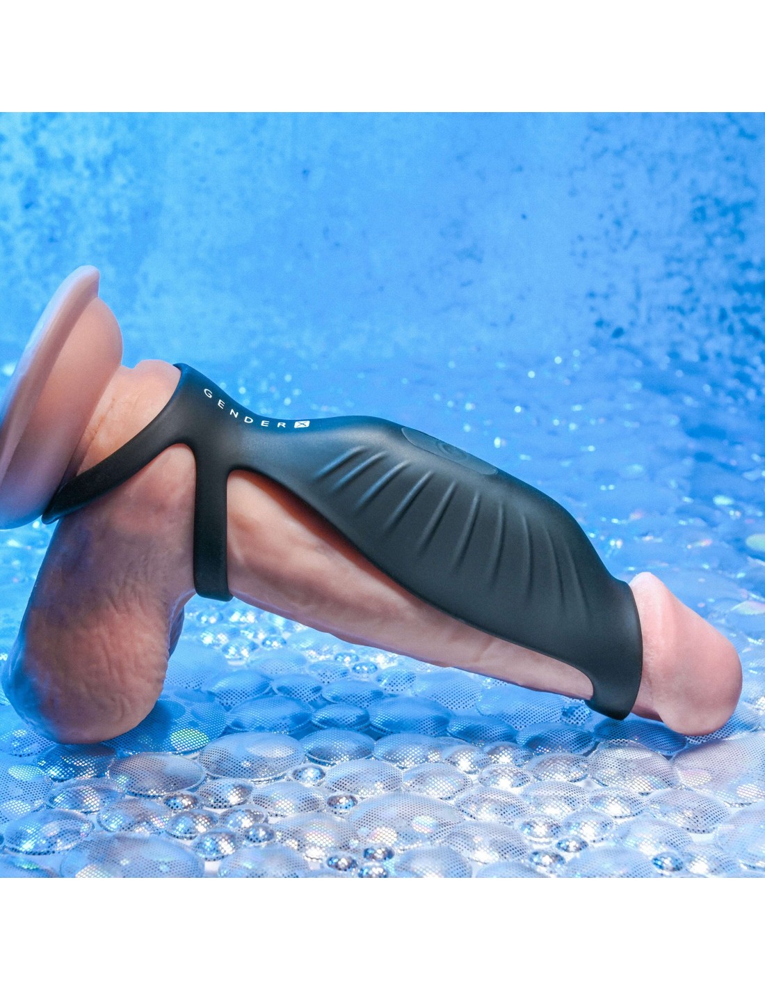 ¡Esta funda para pene única es perfecta para cualquier persona con pene y pelotas que anhele nuevas sensaciones que puedan compartir con cualquier pareja! Coloque las bolas entre dos bucles elásticos en la base y deslice la cabeza del pene en el tercer anillo para mantenerlo seguro en su lugar. ¡Luego prepárese para un viaje extraordinario! 9 velocidades de ondas de placer emanan del eje medio del motor central, que se siente como una envoltura pulsante y de apoyo durante el juego en solitario y también puede estimular a la pareja de varias maneras. Juega bajo el agua si te apetece, ya que este juguete es completamente sumergible. También es recargable por USB y fácil de limpiar.