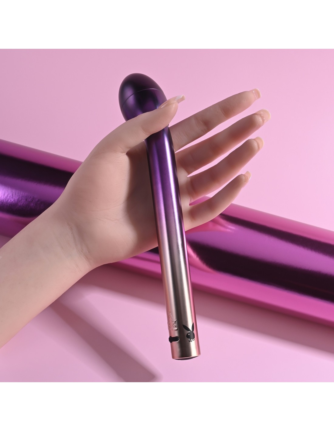 ¿Por qué esperar hasta media noche? Siente el brillo de una profunda satisfacción con Afternoon Delight. Este vibrador de punto G de sensación sedosa presenta un eje largo y recto que termina con una cabeza redonda y está en ángulo para masajear su punto G con 7 velocidades y ritmos. Deja que su acabado cromado degradado te encante. ¡Libertad para jugar!